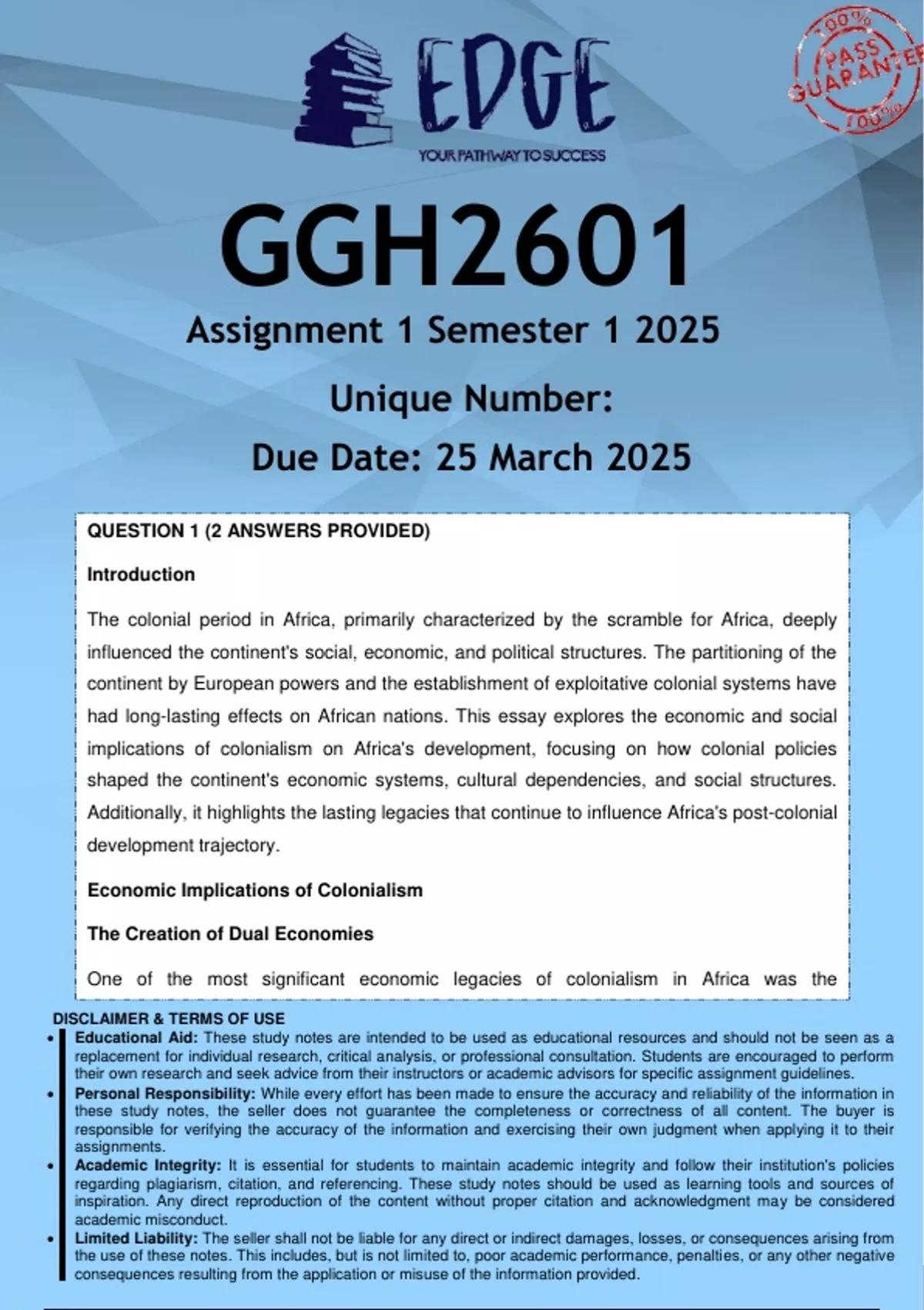 Educational Aid: These study notes are intended to be used as educational resources and should not be seen as a