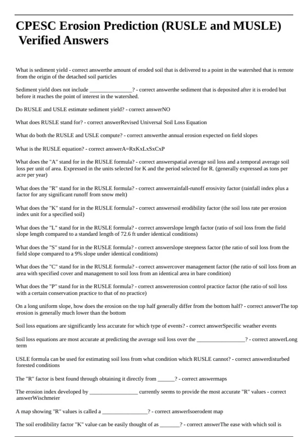 CPESC Erosion Prediction (RUSLE and MUSLE)