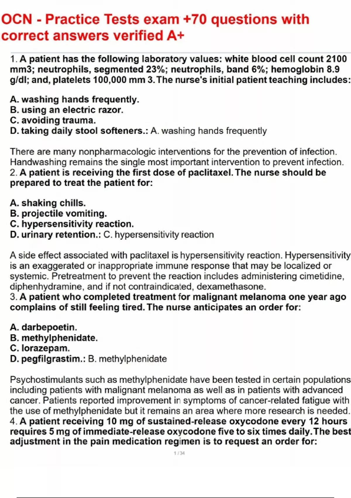 OCN - Practice Tests exam +70 questions with correct answers verified A+OCN - Practice Tests exam +70 questions with correct answers verified A+OCN - Practice Tests exam +70 questions with correct answers verified A+OCN - Practice Tests exam +70 questions with correct answers verified A+OCN - Practice Tests exam +70 questions with correct answers verified A+OCN - Practice Tests exam +70 questions with correct answers verified A+