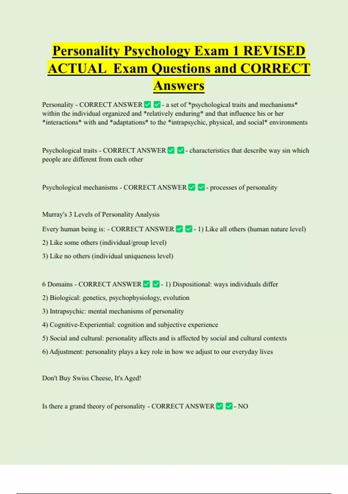 Personality Psychology Exam 1 REVISED ACTUAL Exam Questions and CORRECT Answers