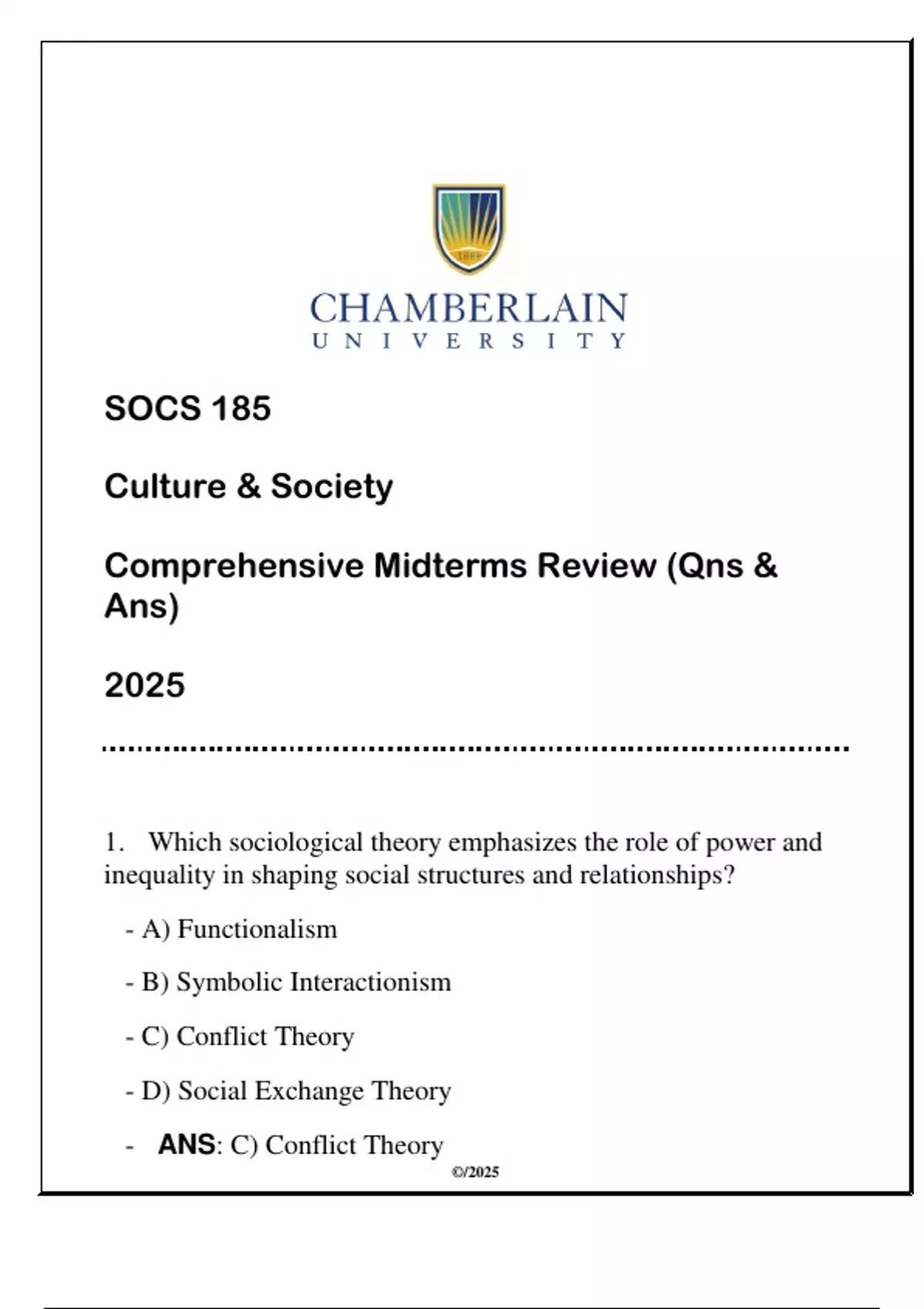 - ANS: C) Conflict Theory