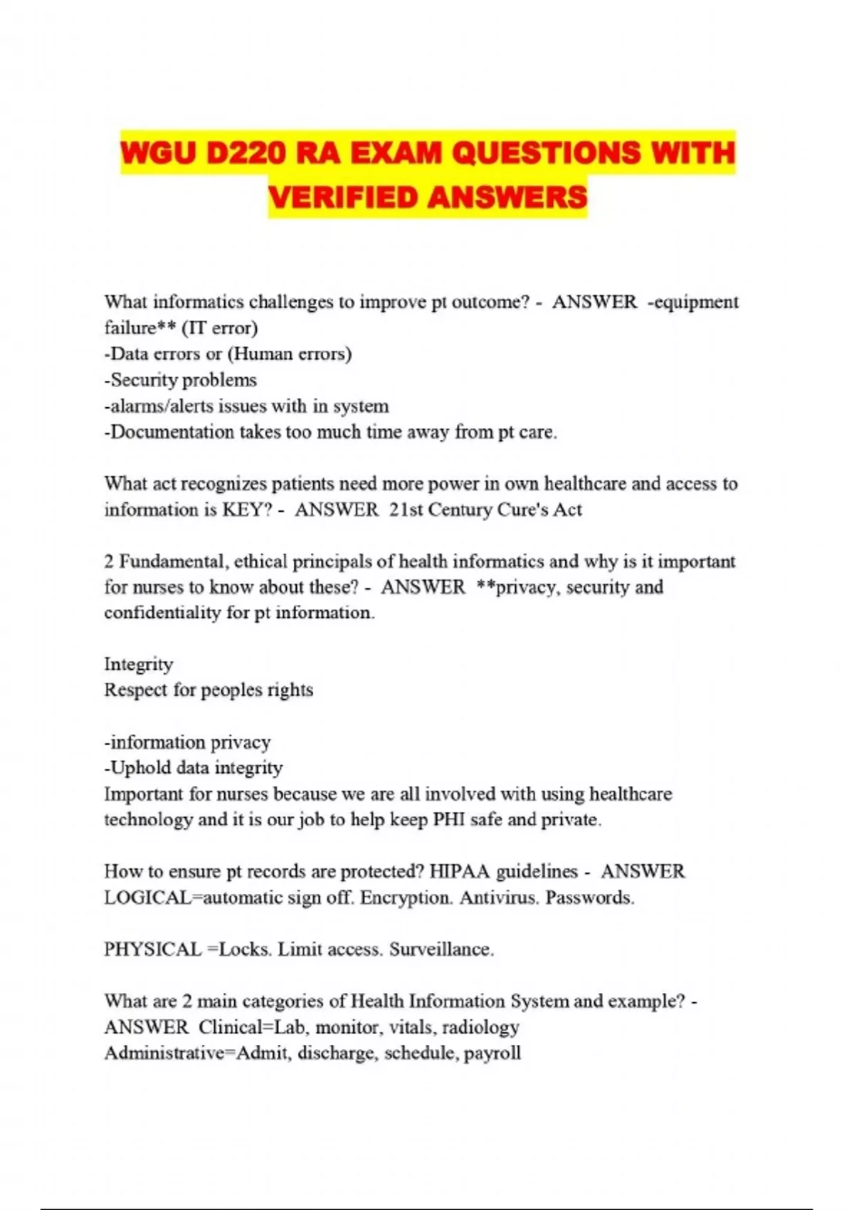 WGU D220 RA EXAM QUESTIONS WITH VERIFIED ANSWERS...