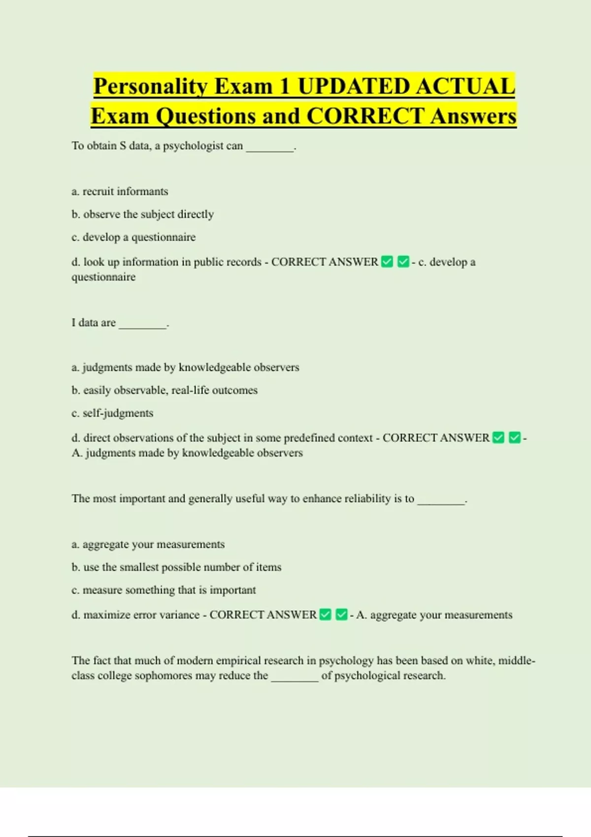 d. maximize error variance - CORRECT ANSWER - A. aggregate your measurements