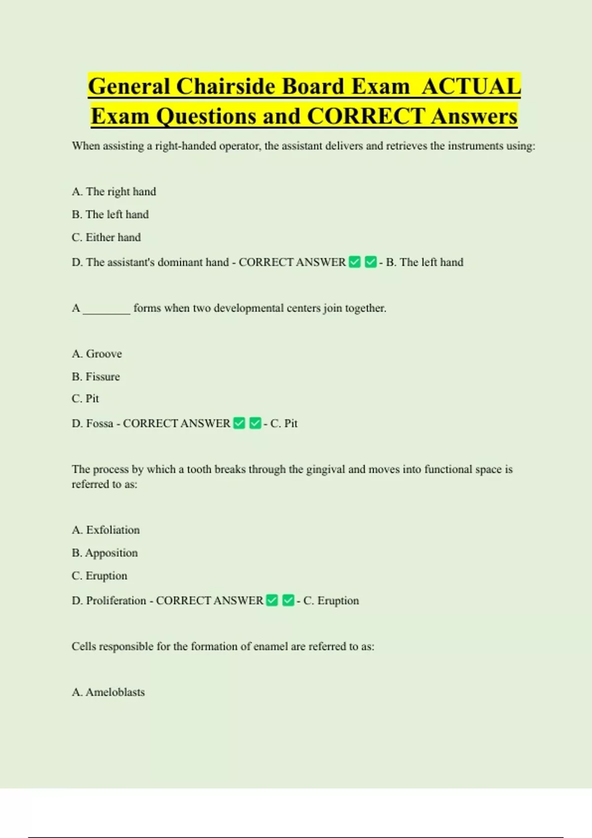 D. Dentinoblasts - CORRECT ANSWER - A. Ameloblasts