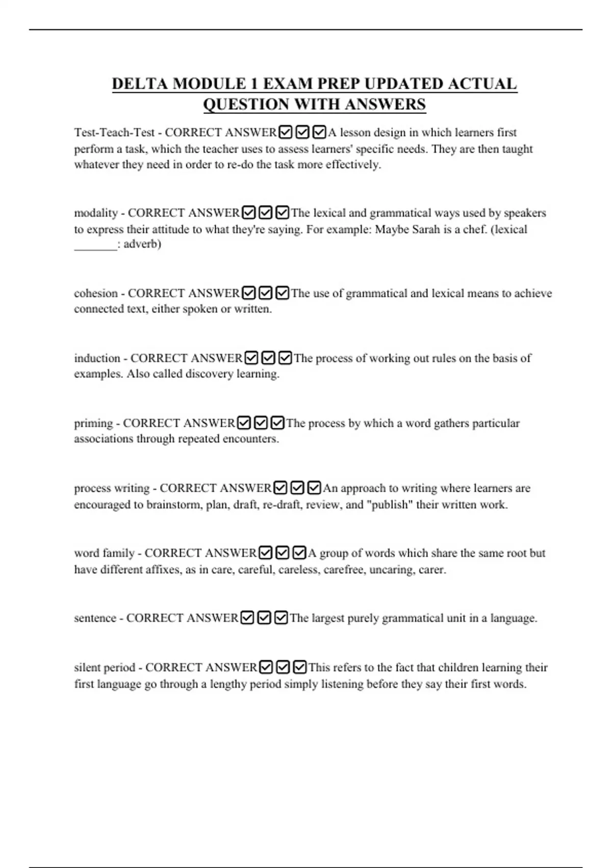 ,face validity - CORRECT ANSWER✅✅✅Used to say that a test is acceptable to a learner,