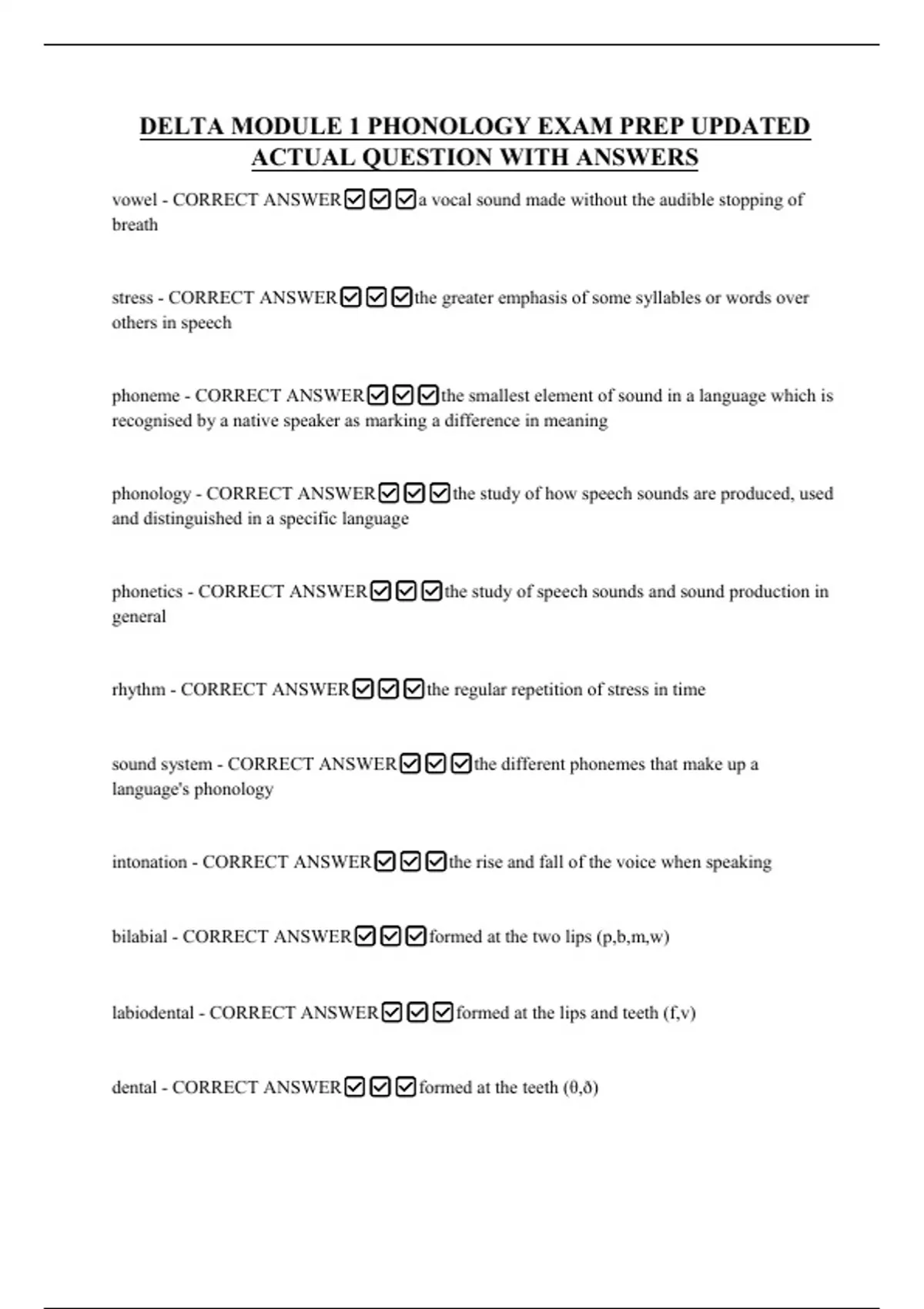 phoneme - CORRECT ANSWER✅✅✅the smallest element of sound in a language which is