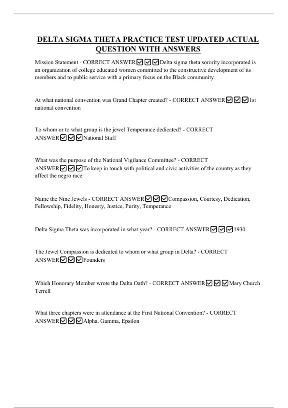 DELTA SIGMA THETA PRACTICE TEST UPDATED ACTUAL QUESTION WITH ANSWERS