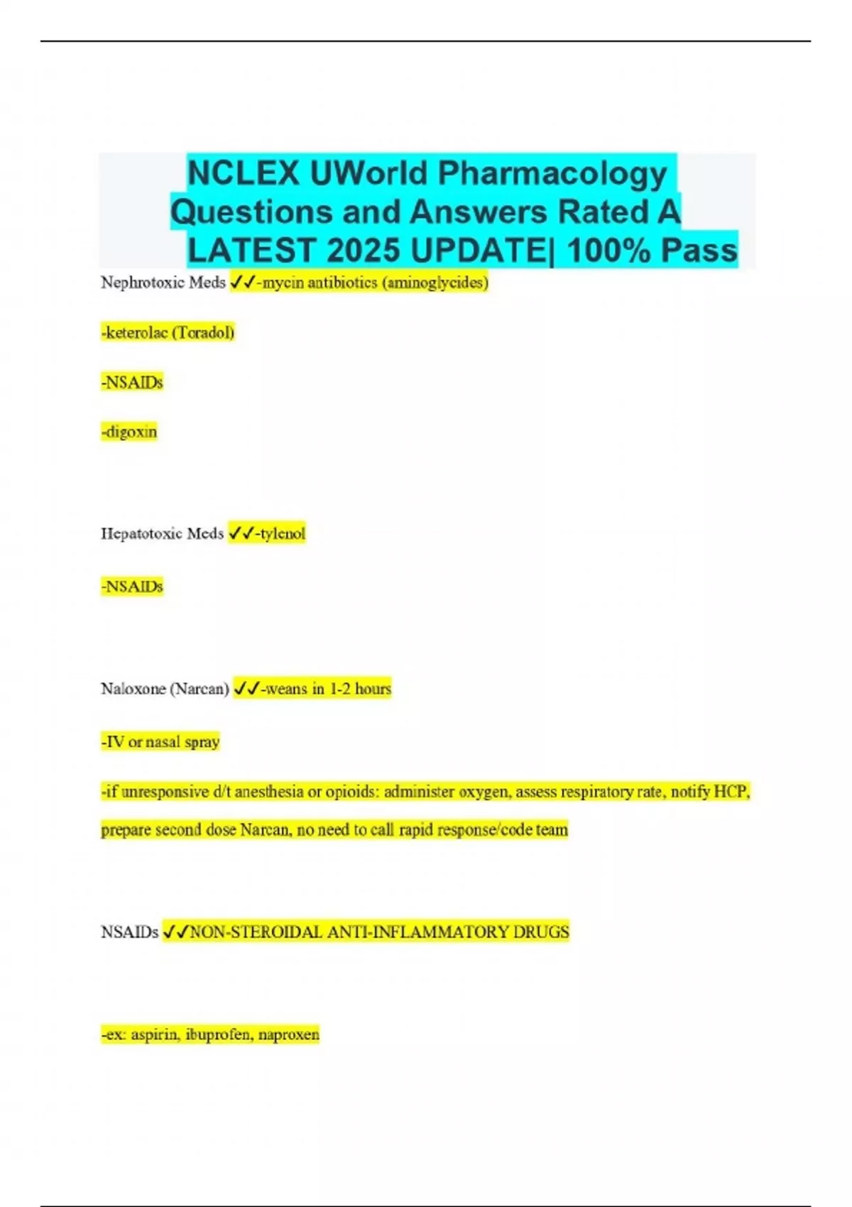 NCLEX UWorld Pharmacology Questions and Answers Rated A LATEST 2025 UPDATE| 100% Pass