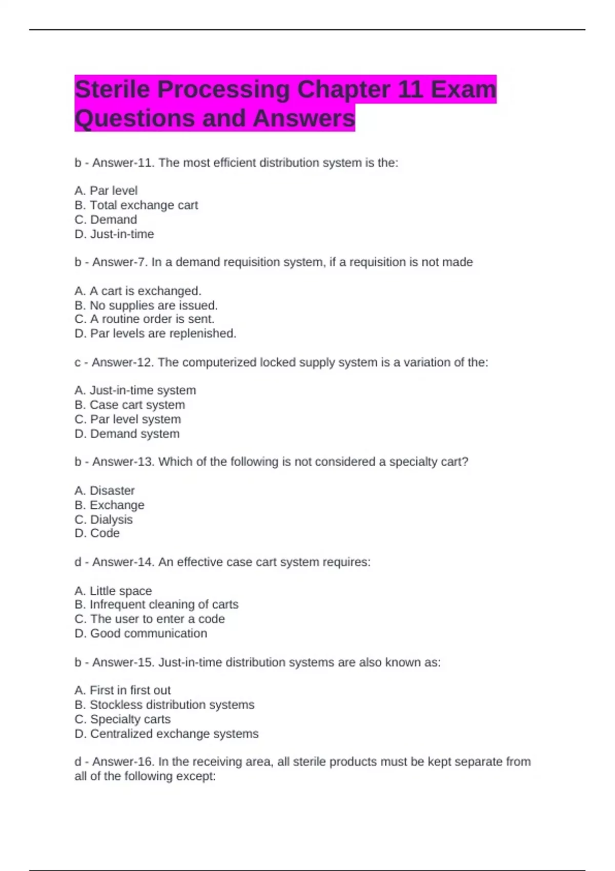 Sterile Processing Chapter 11 Exam Questions and Answers