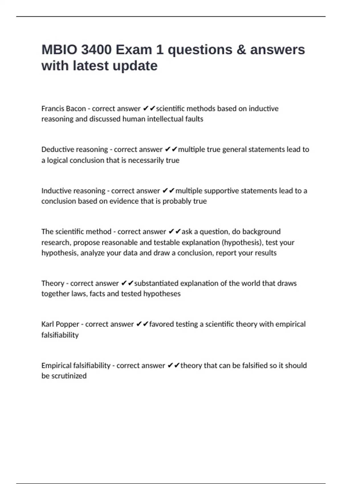 Francis Bacon - correct answer ✔✔scientific methods based on inductive