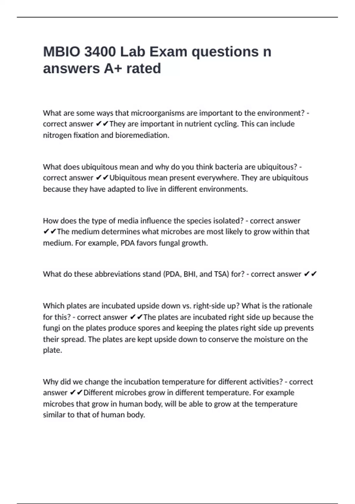for this? - correct answer ✔✔The plates are incubated right side up because the