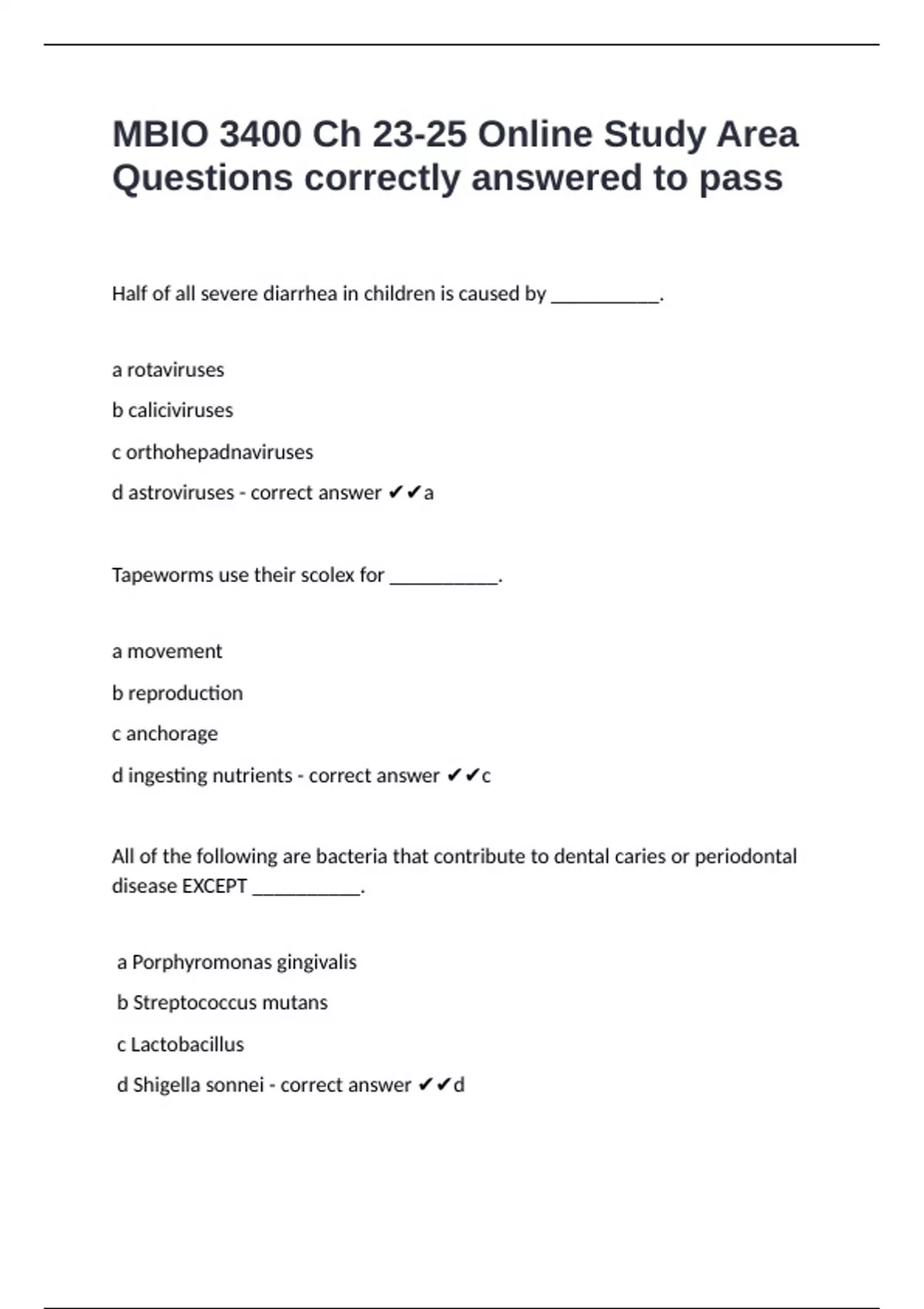 MBIO 3400 Ch 23-25 Online Study Area Questions correctly answered to pass