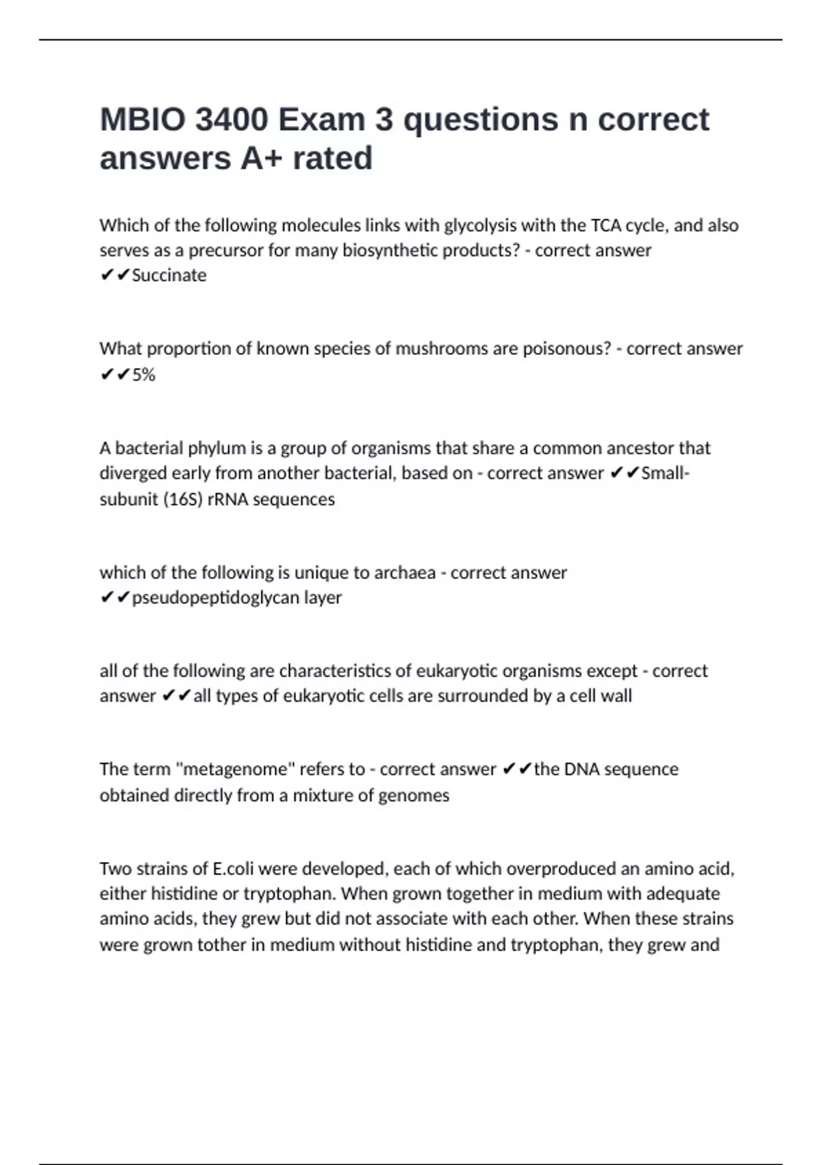 MBIO 3400 Exam 3 questions n correct answers A+ rated