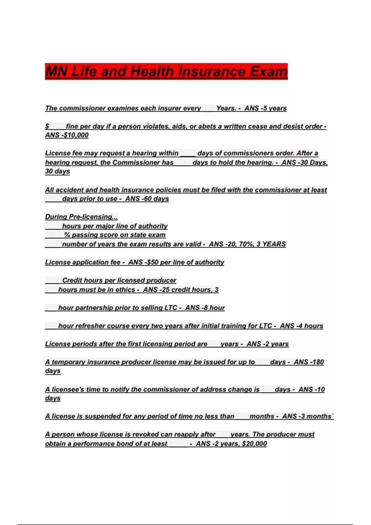 MN Life and Health Insurance Exam