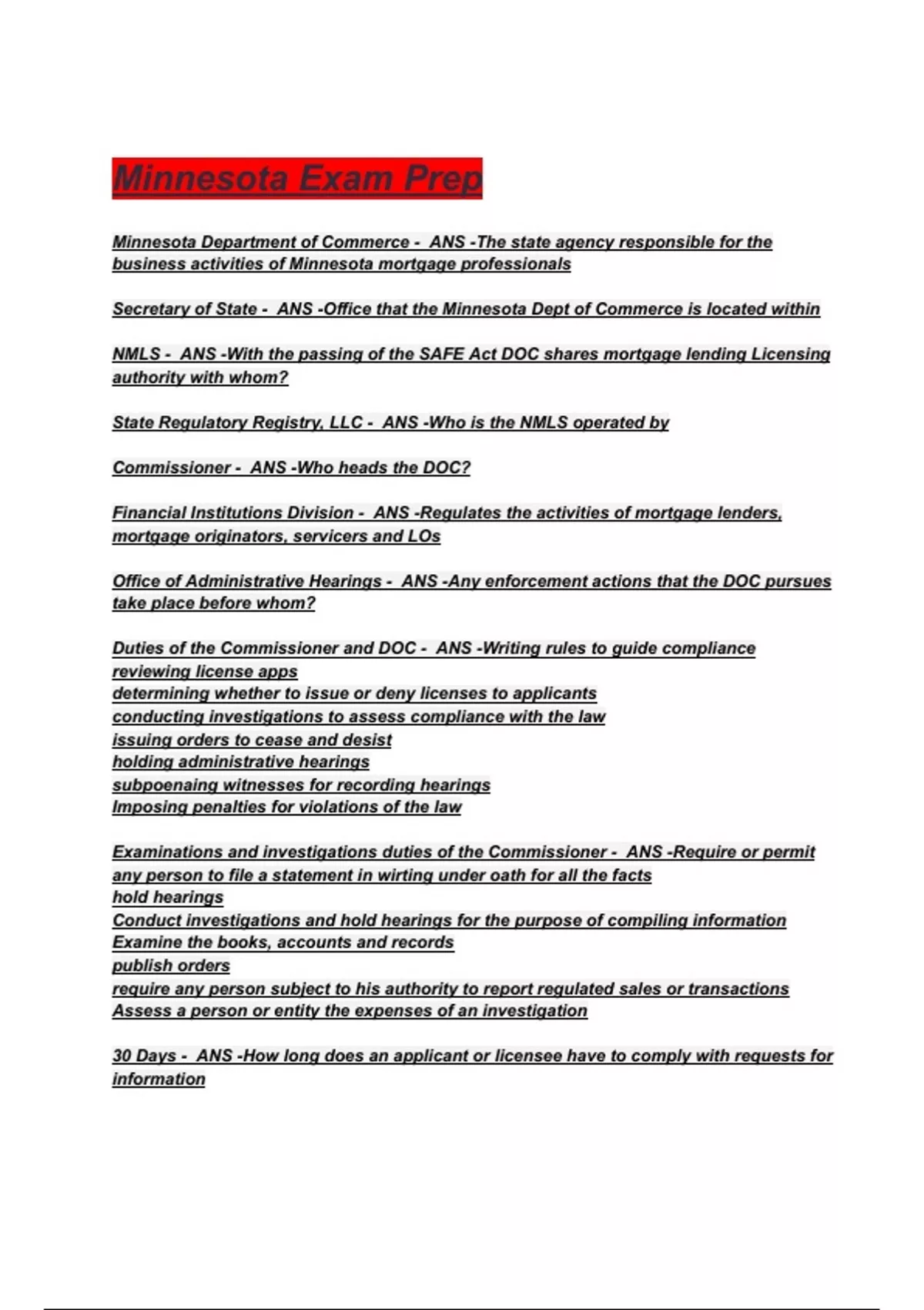 Minnesota Exam Prep Questions with correct Answers 2025/2026( A+ GRADED 100% VERIFIED).