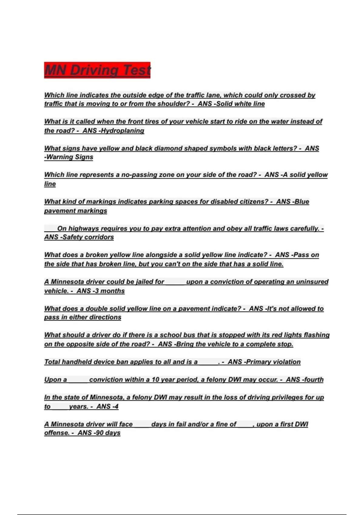 MN Driving Test Questions and Answers 2025/2026( A+ GRADED 100% VERIFIED).