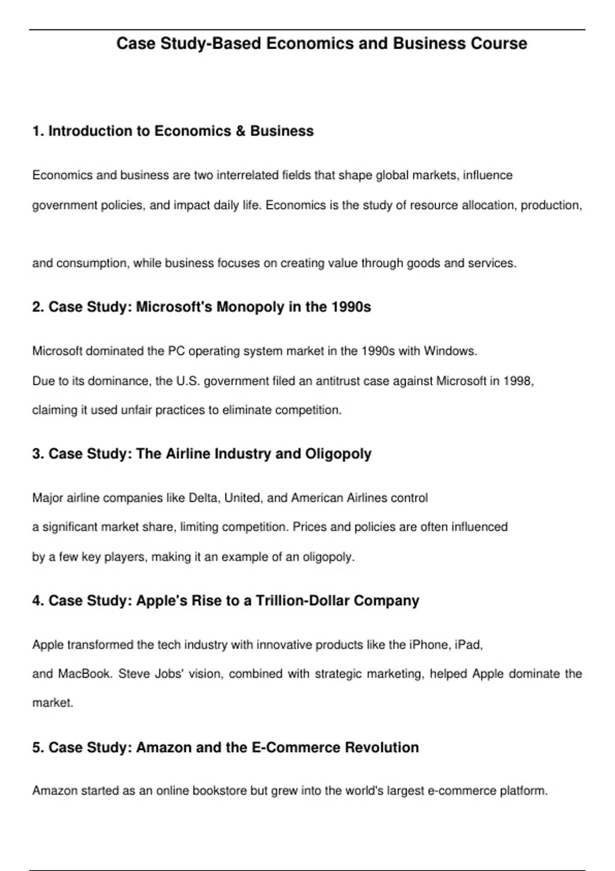 Case Study-Based Economics and Business Course