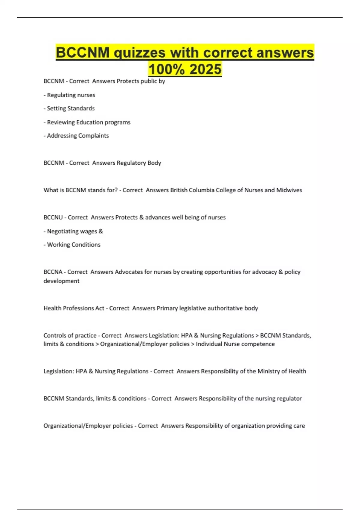 What is BCCNM stands for? - Correct Answers British Columbia College of Nurses and Midwives