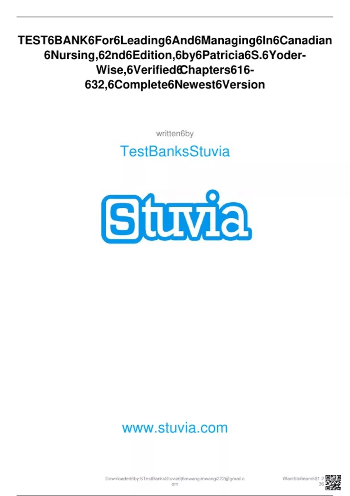 TEST BANK For Leading And Managing In Canadian Nursing, 2nd Edition, by Patricia S. Yoder-Wise, Verified Chapters 1 - 32, Complete Newest Version