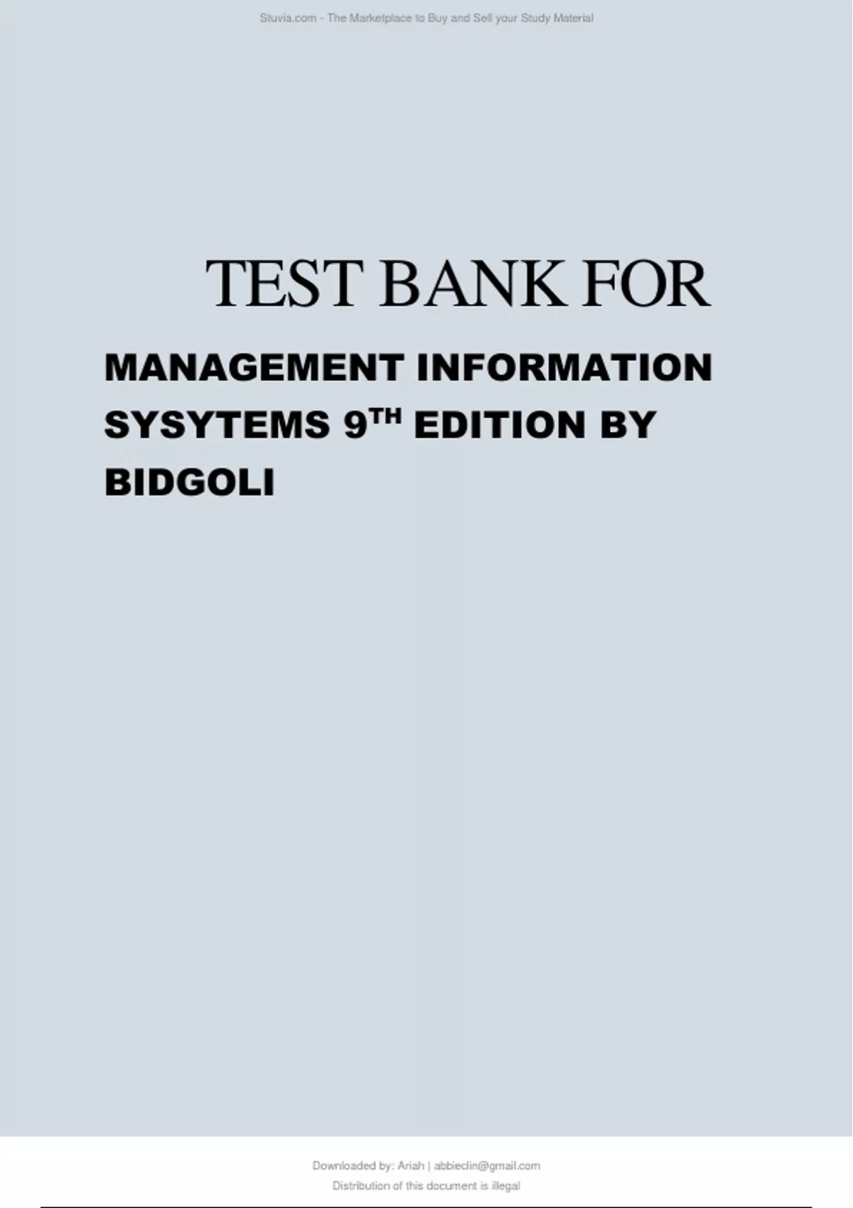 TEST BANK FOR MANAGEMENT INFORMATION SYSYTEMS 9TH EDITION BY BIDGOLI