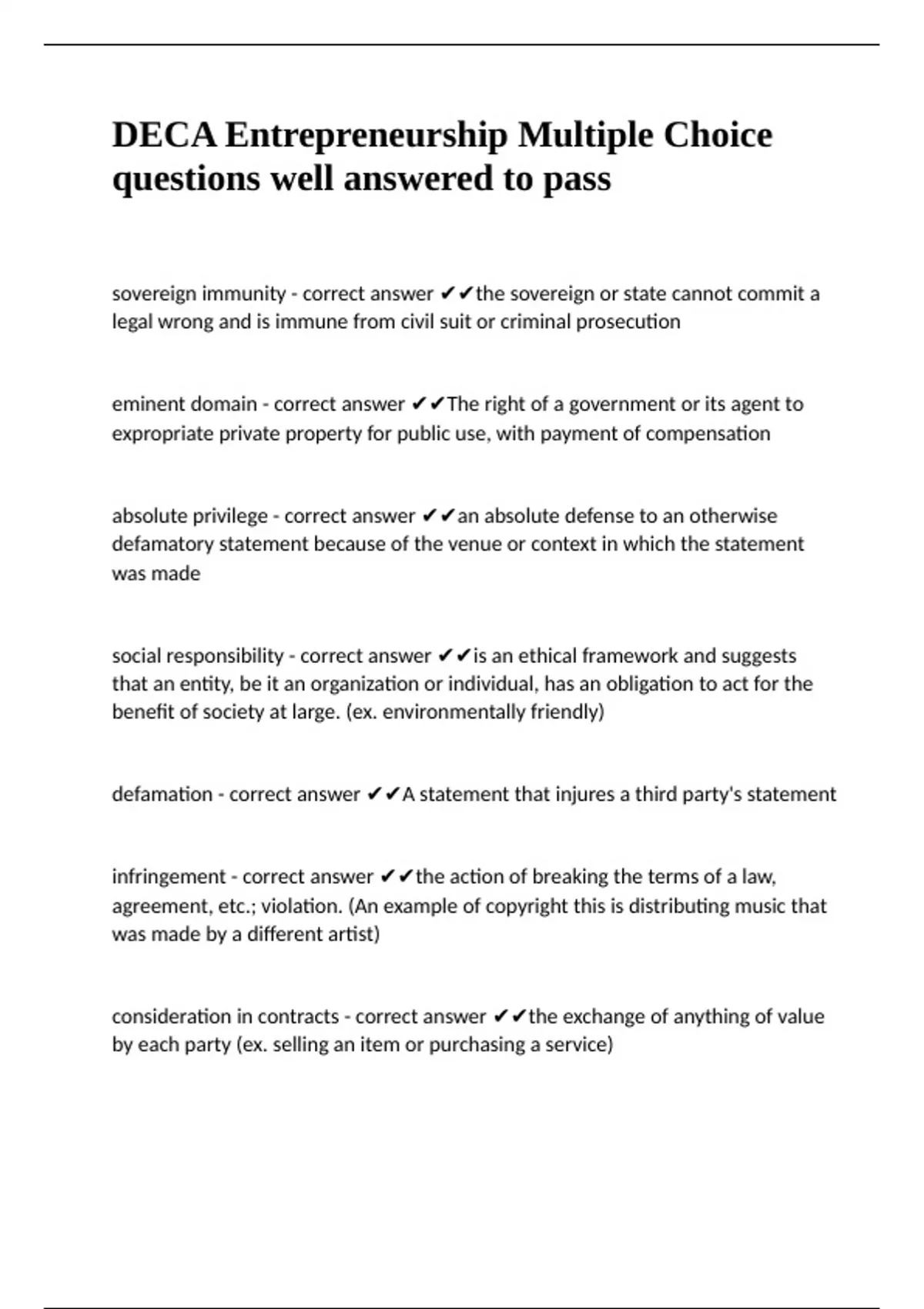 DECA Entrepreneurship Multiple Choice questions well answered to pass