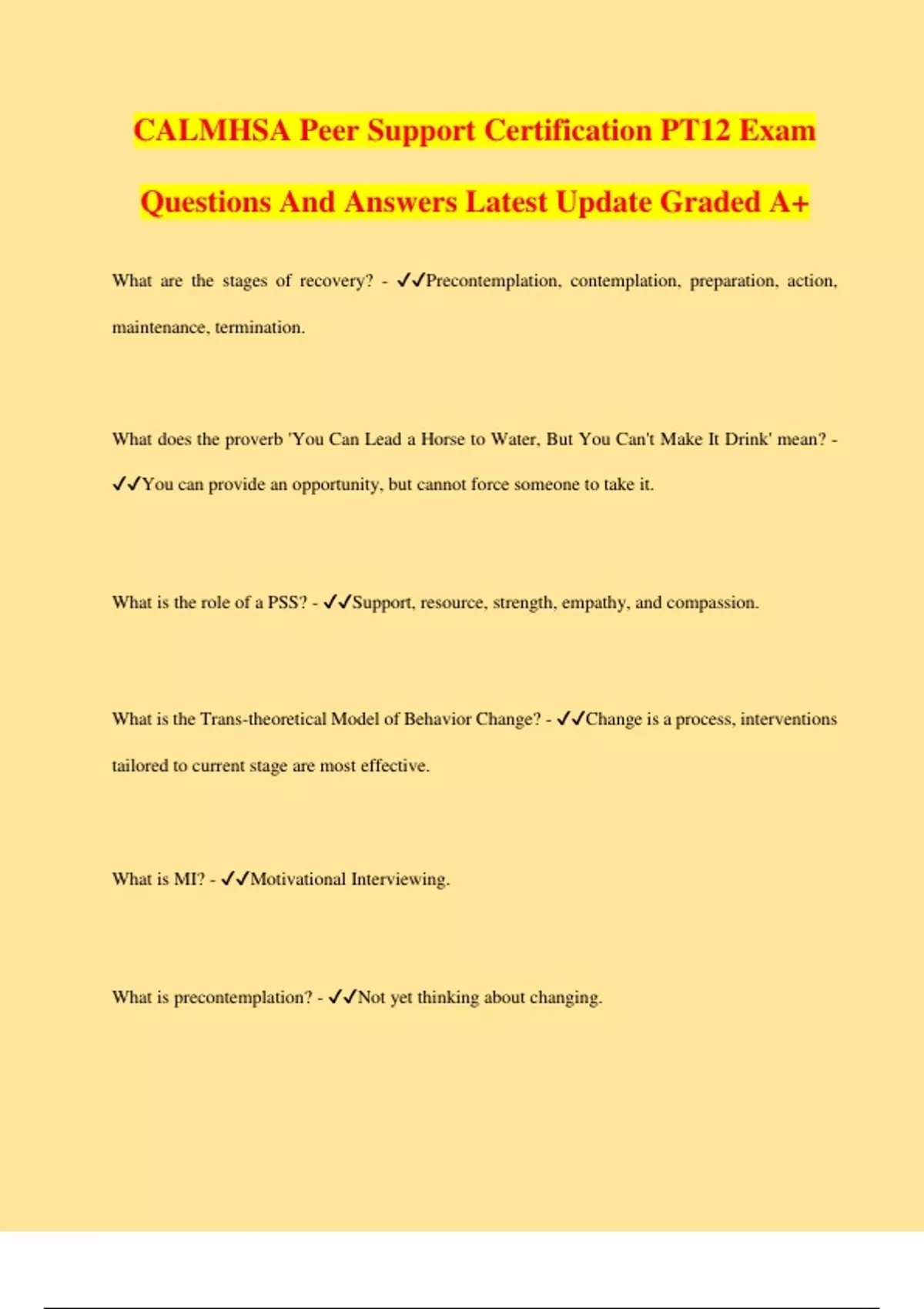 CALMHSA Peer Support Certification PT12 Exam