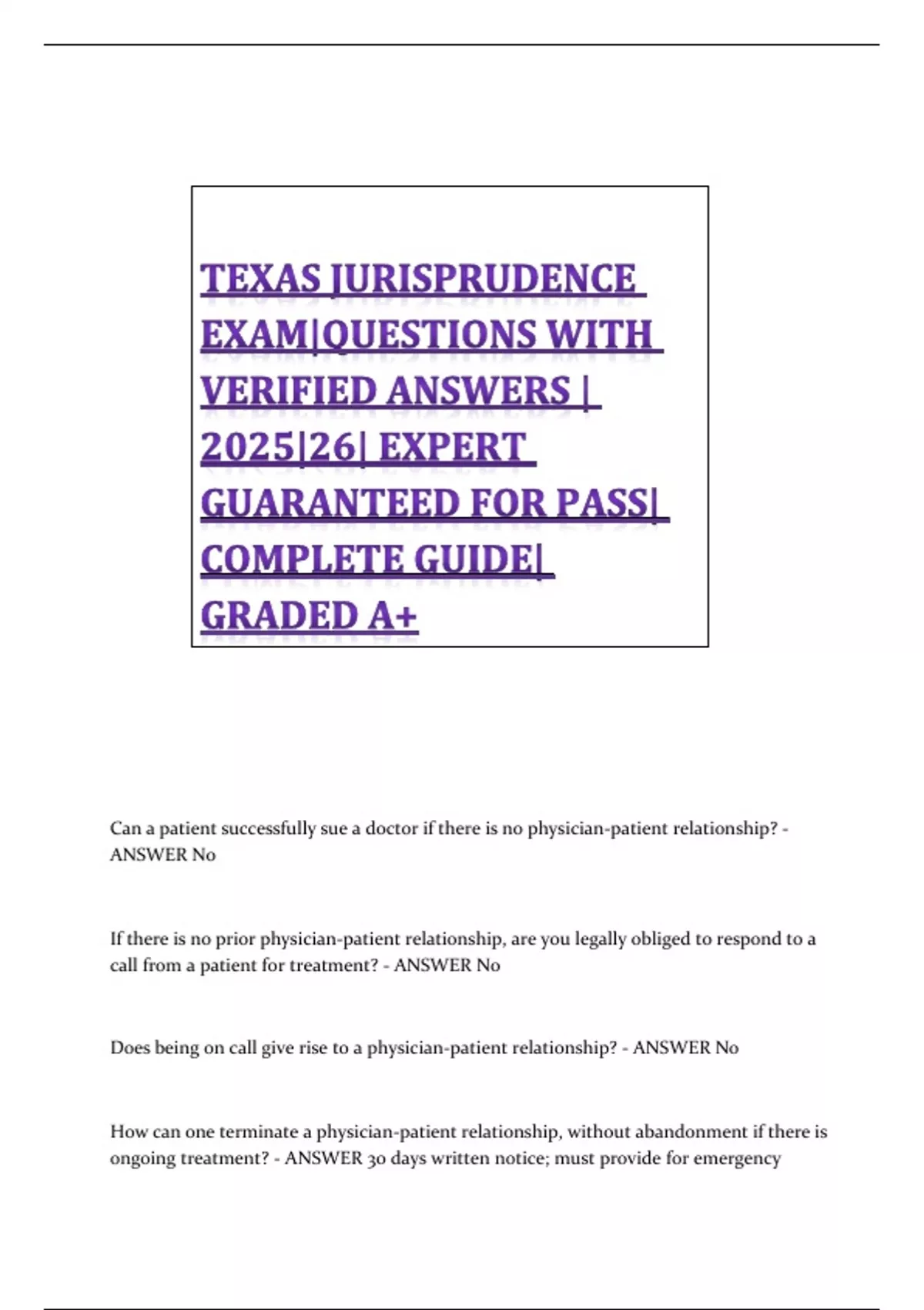 Does being on call give rise to a physician-patient relationship? - ANSWER No