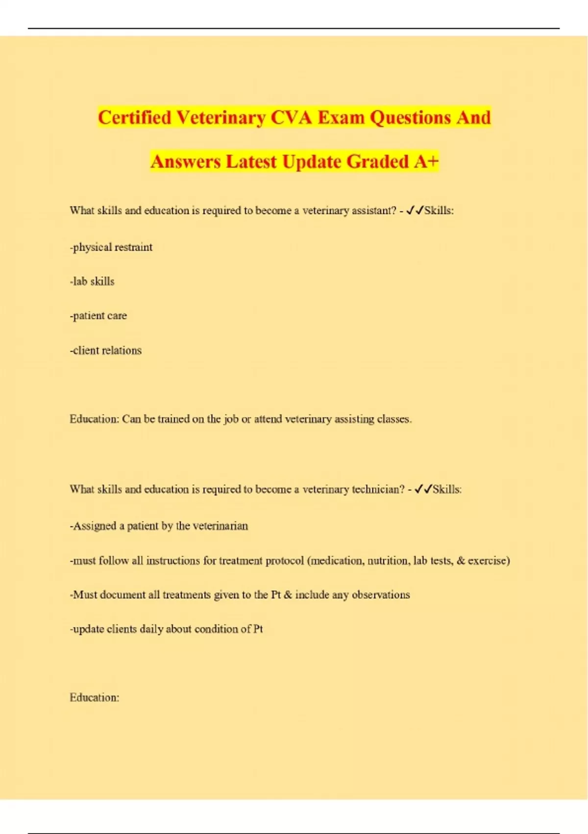 Certified Veterinary CVA Exam Questions And Answers Latest Update Graded A+