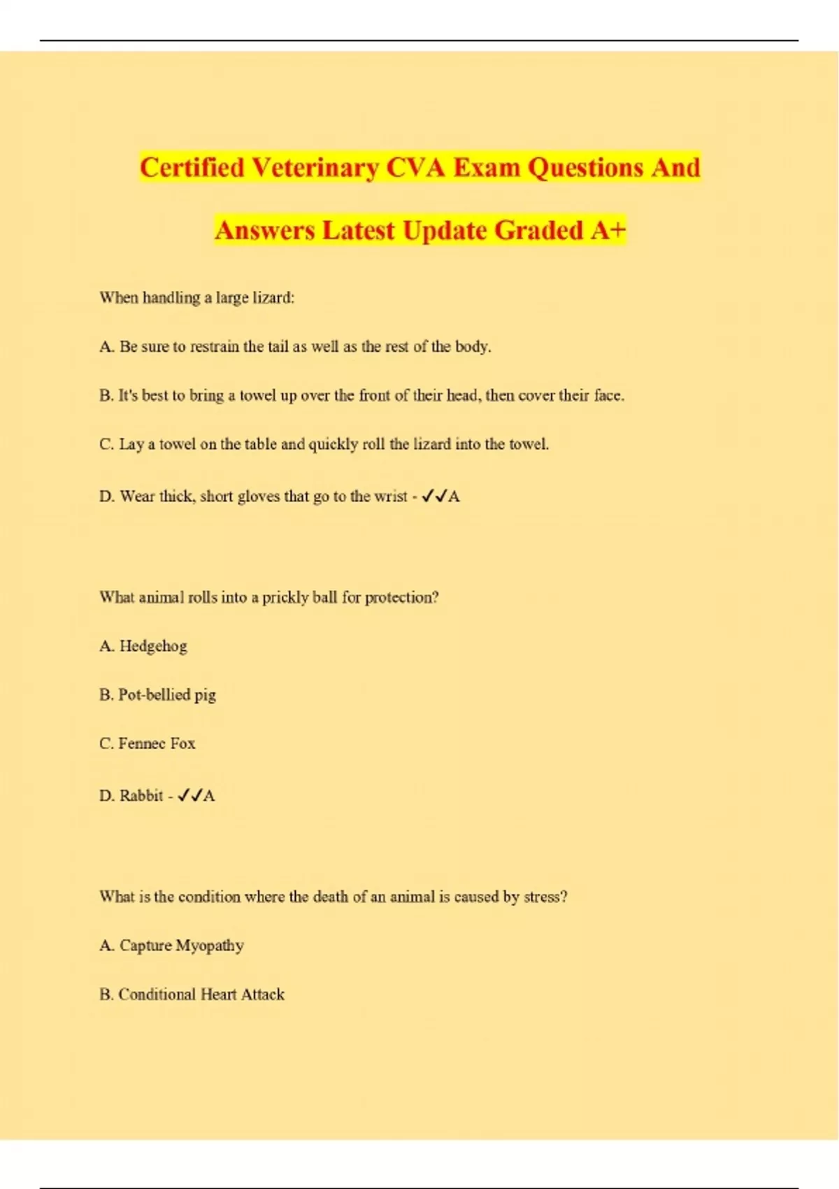 Certified Veterinary CVA Exam Questions And Answers Latest Update Graded A+