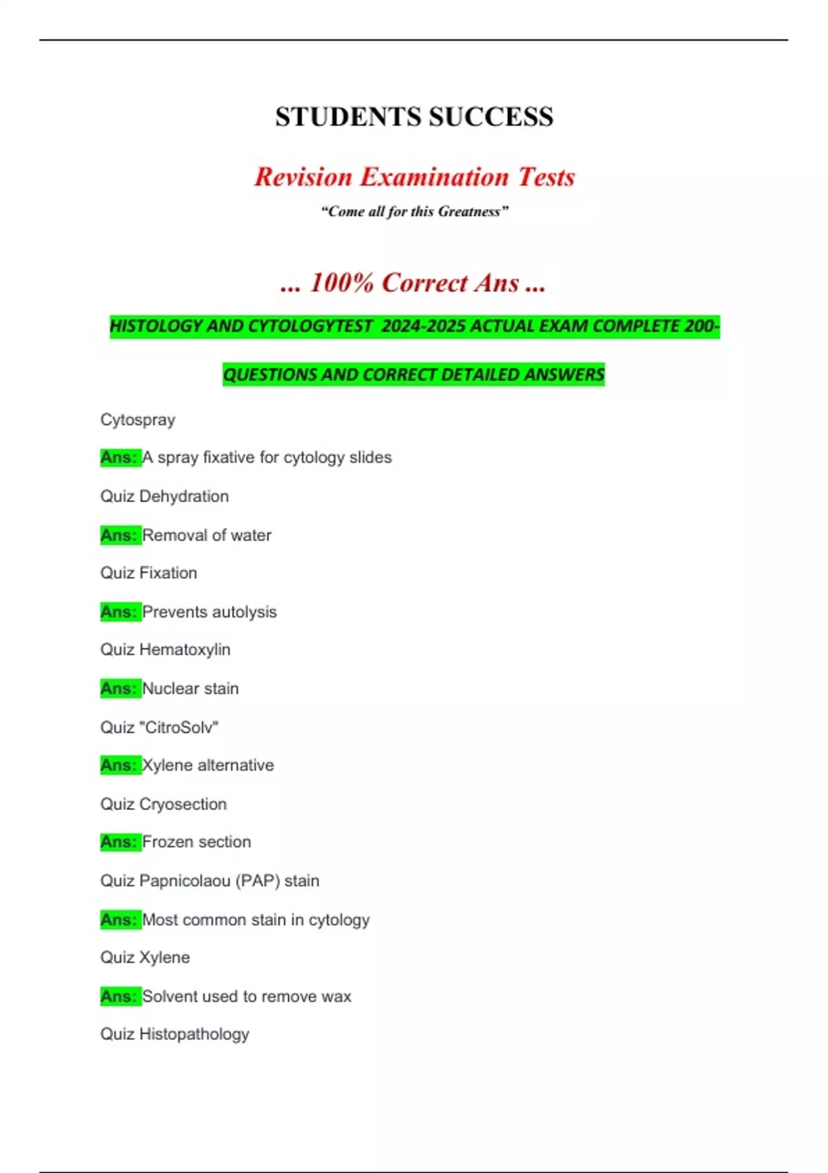 HISTOLOGY AND CYTOLOGYTEST 2024-2025 ACTUAL EXAM COMPLETE 200-