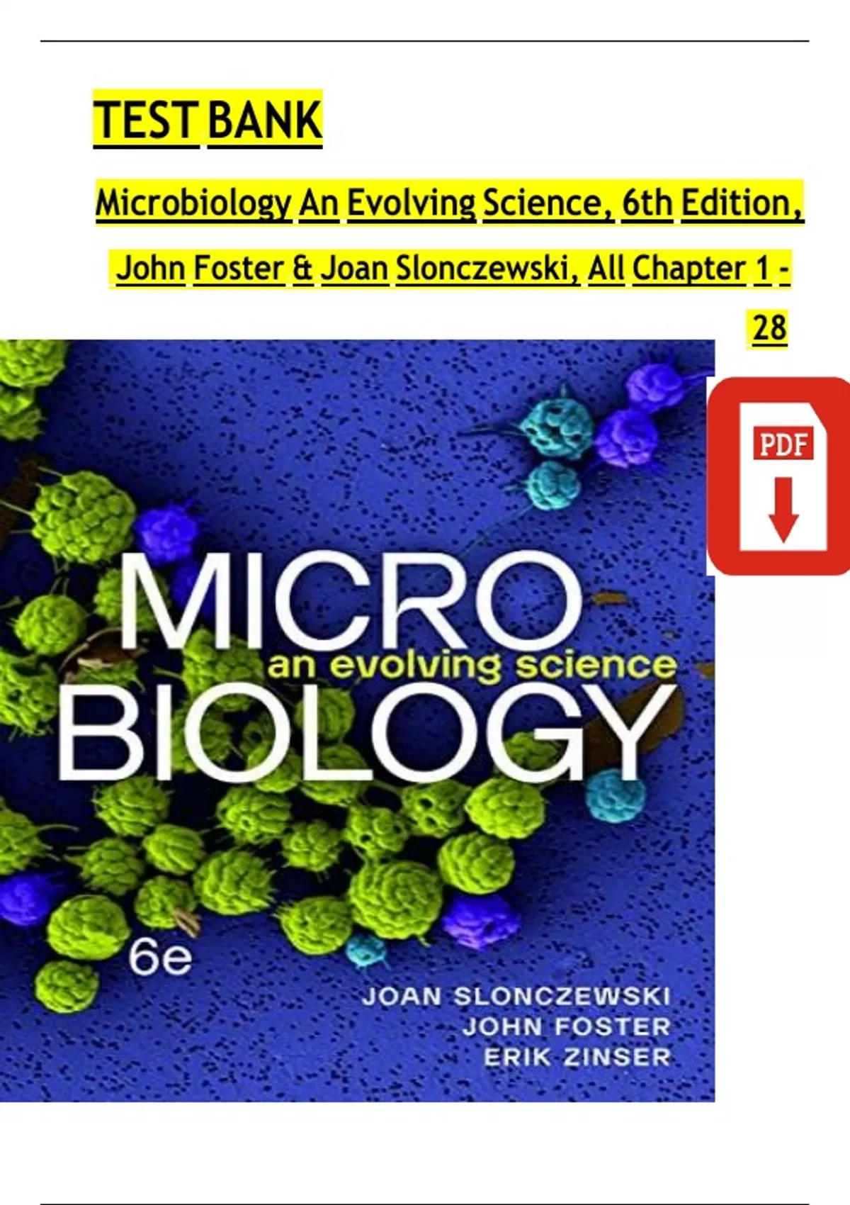 TEST BANK Microbiology An Evolving Science, 6th Edition, John Foster & Joan Slonczewski, All Chapter 1 - 28