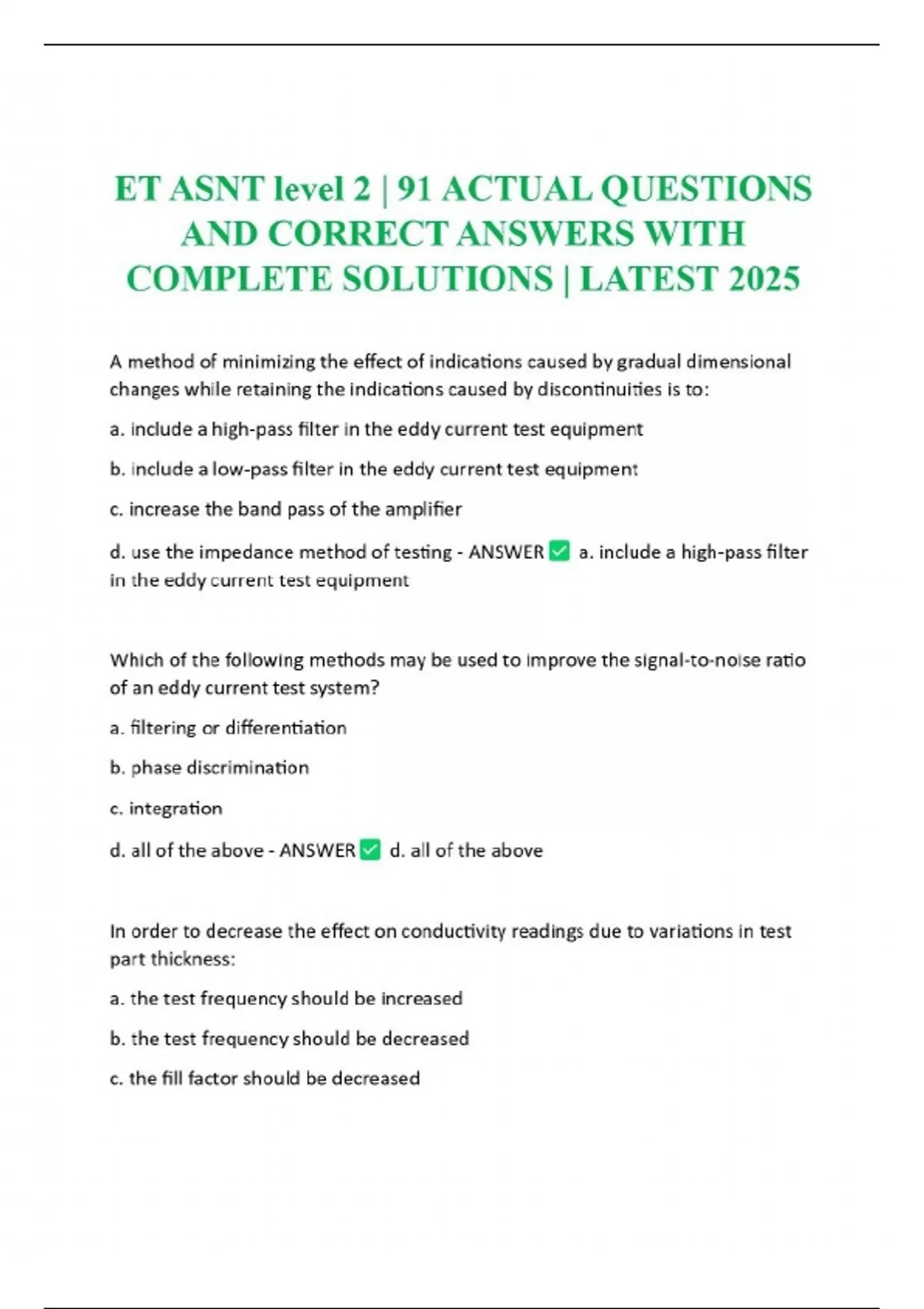 ET ASNT level 2 | 91 ACTUAL QUESTIONS AND CORRECT ANSWERS WITH COMPLETE SOLUTIONS | LATEST 2025