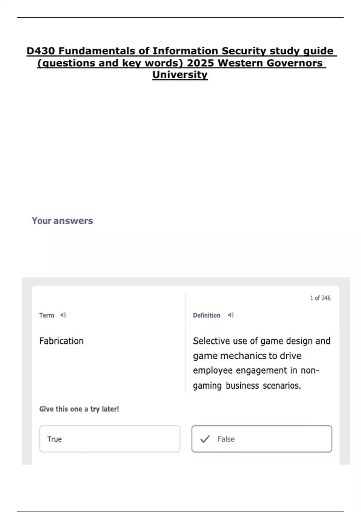 D430 Fundamentals of Information Security study guide (questions and key words) 2025 Western Governors University