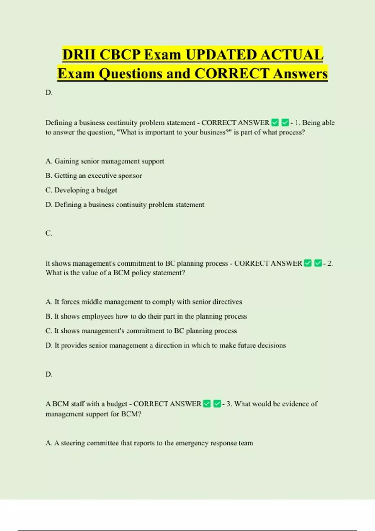 It shows management's commitment to BC planning process - CORRECT ANSWER - 2.