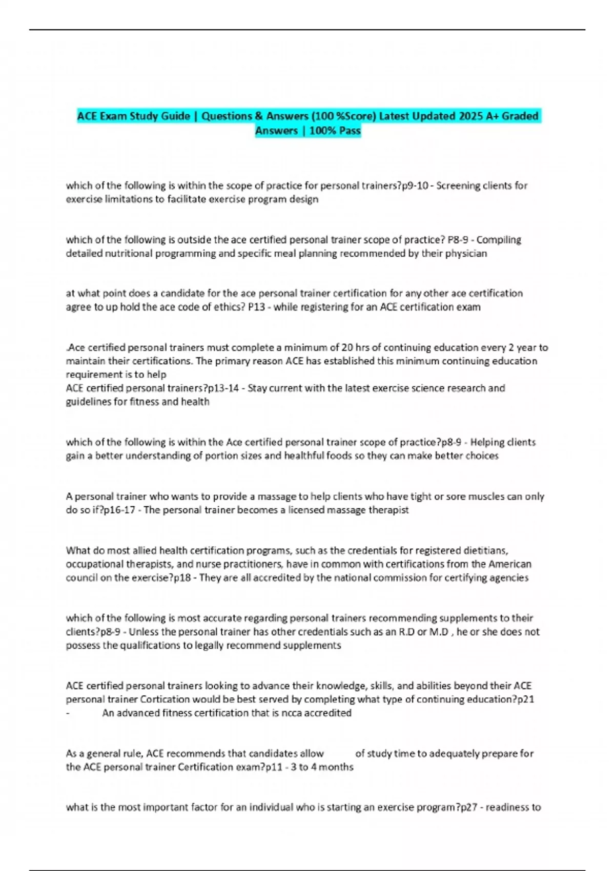 ACE Exam Study Guide | Questions & Answers (100 %Score) Latest Updated 2025 A+ Graded Answers | 100% Pass