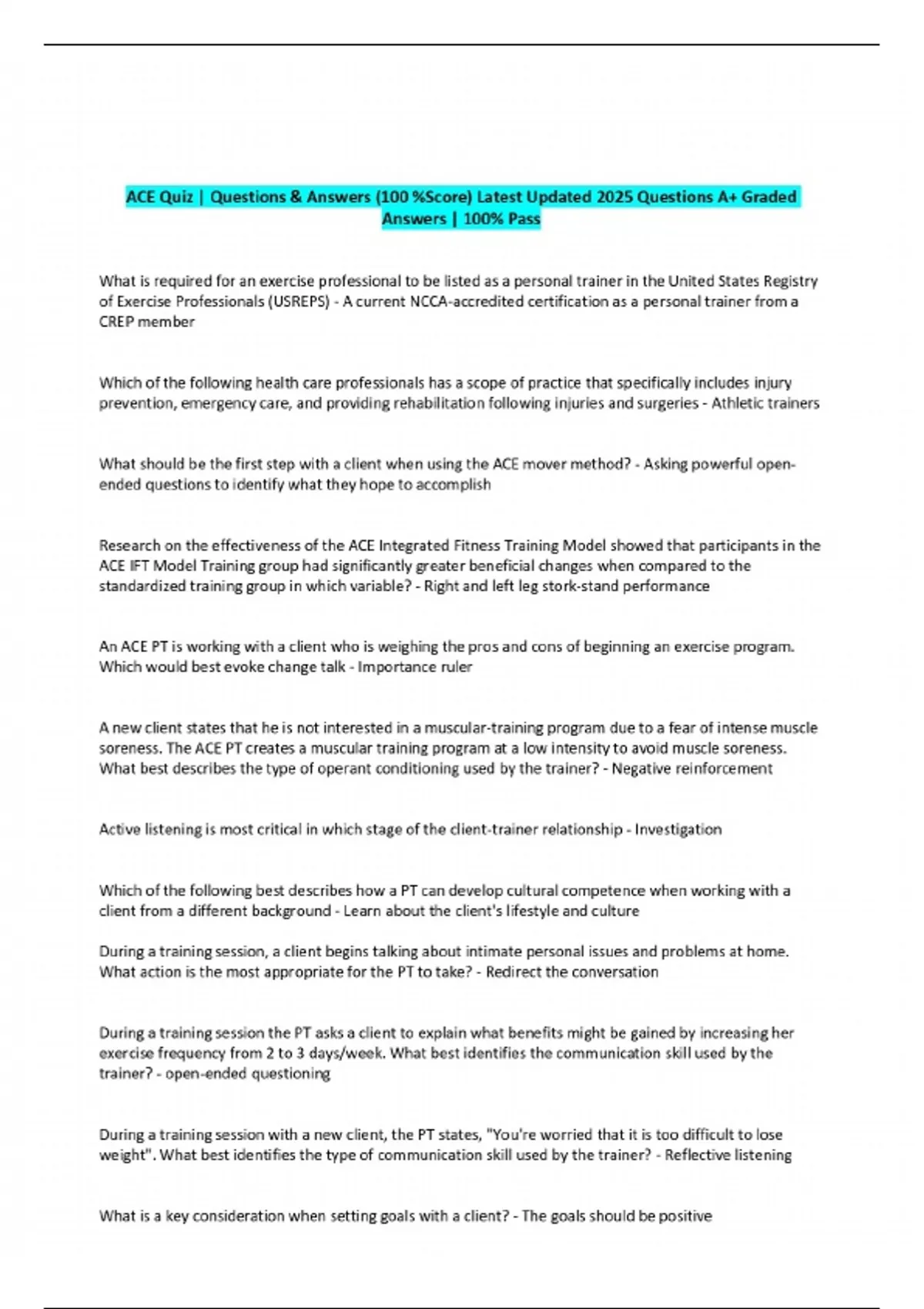 ACE Quiz | Questions & Answers (100 %Score) Latest Updated 2025 Questions A+ Graded Answers | 100% Pass