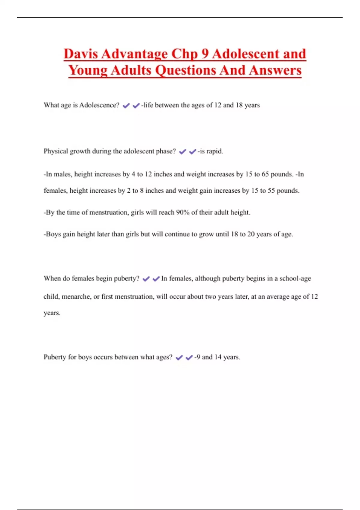 , Davis Advantage Chp 9 Adolescent and