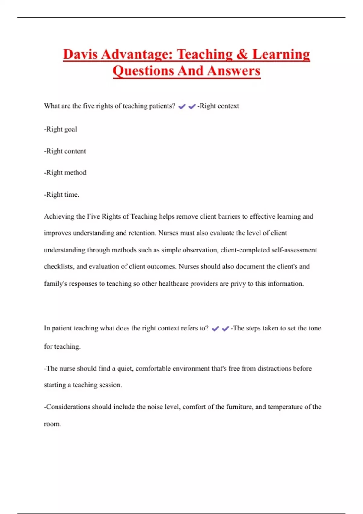 Achieving the Five Rights of Teaching helps remove client barriers to effective learning and