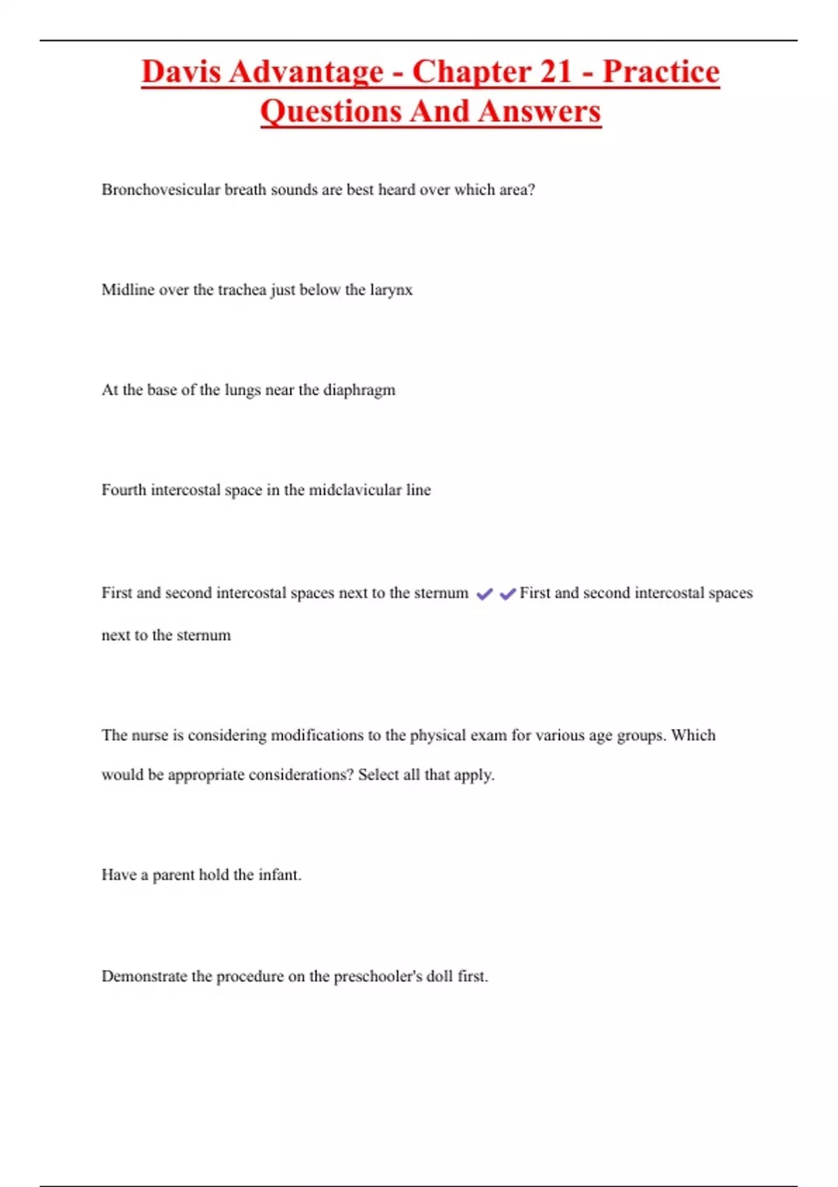 , Davis Advantage - Chapter 21 - Practice
