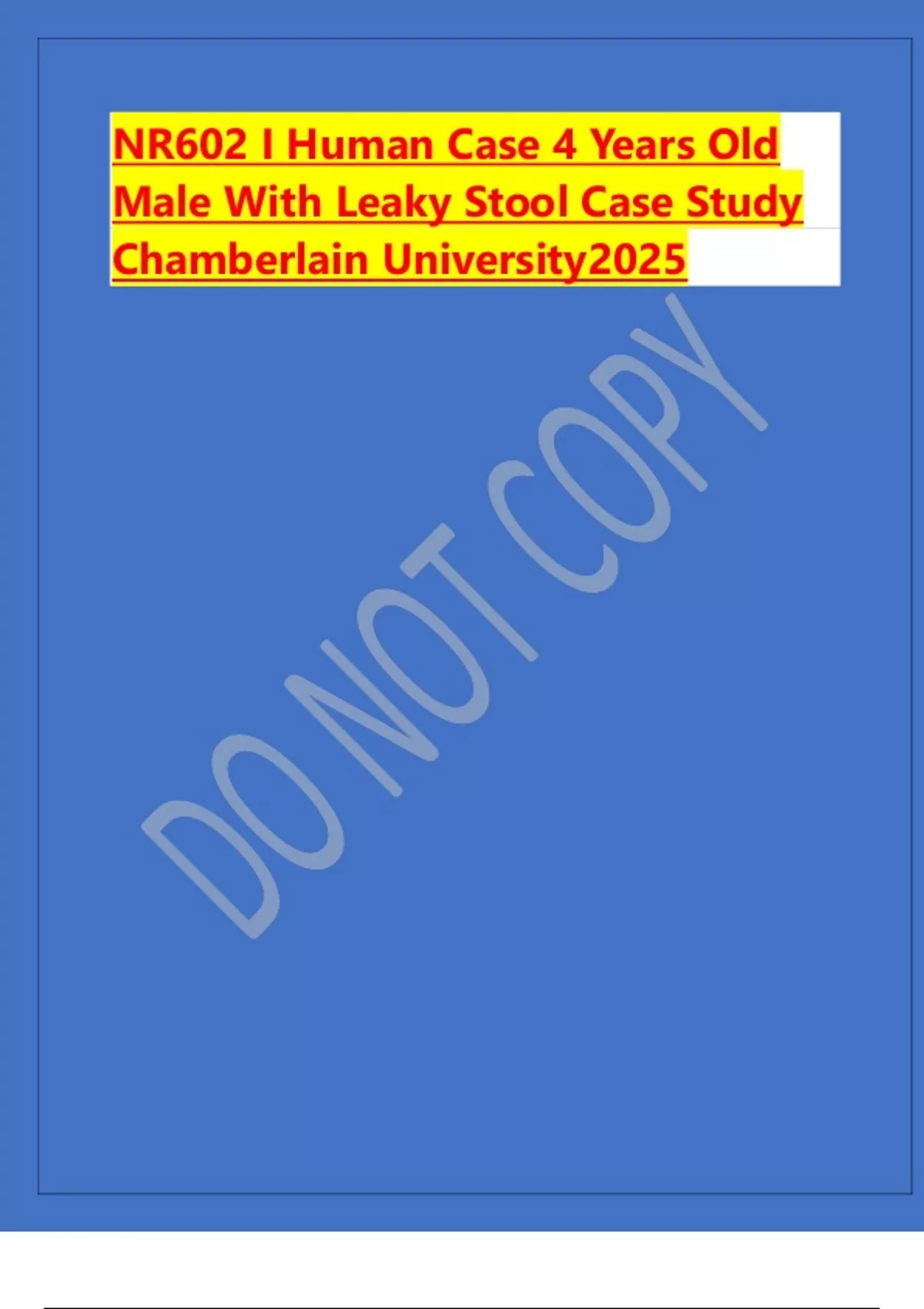 NR602 I Human Case 4 Years Old Male With Leaky Stool Case Study Chamberlain University2025