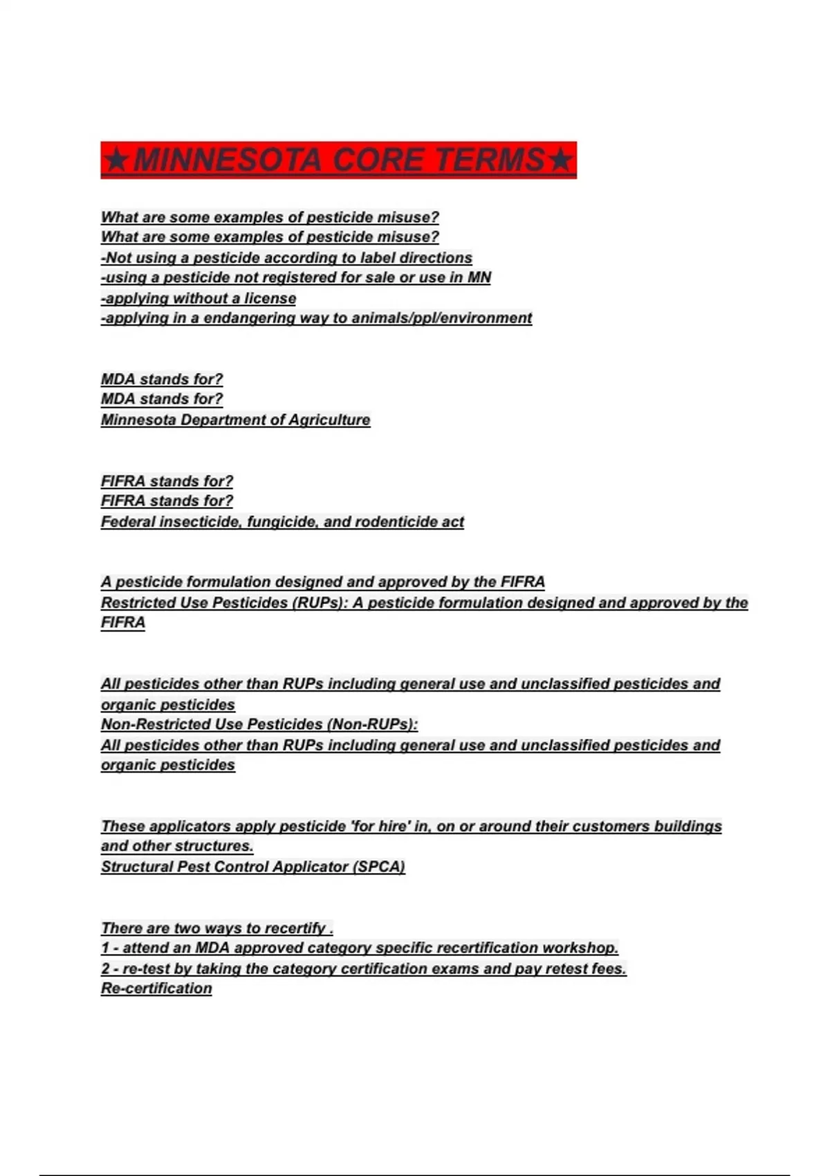 ★MINNESOTA CORE TERMS★