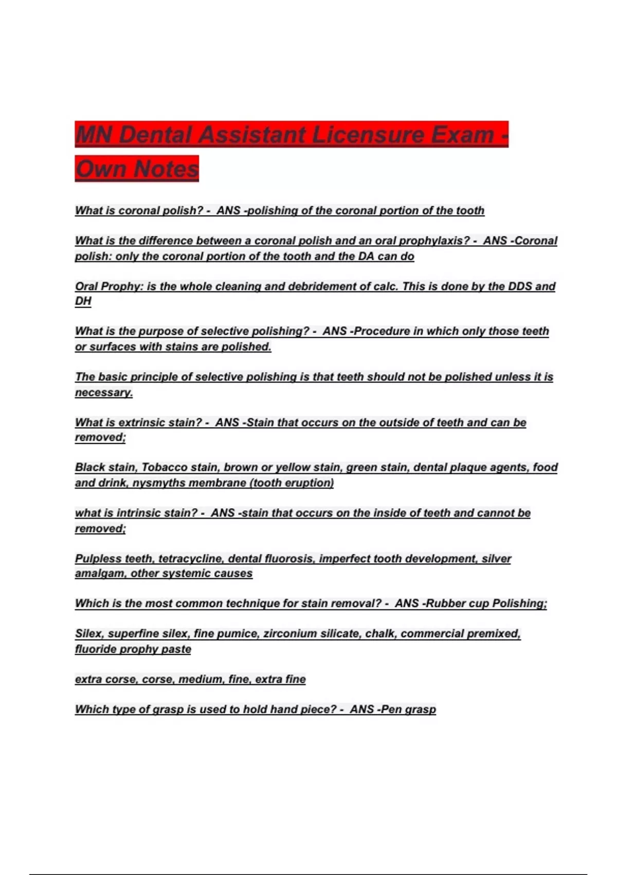 MN Dental Assistant Licensure Exam - Own Notes Questions and Answers 2025/2026( A+ GRADED 100% VERIFIED).