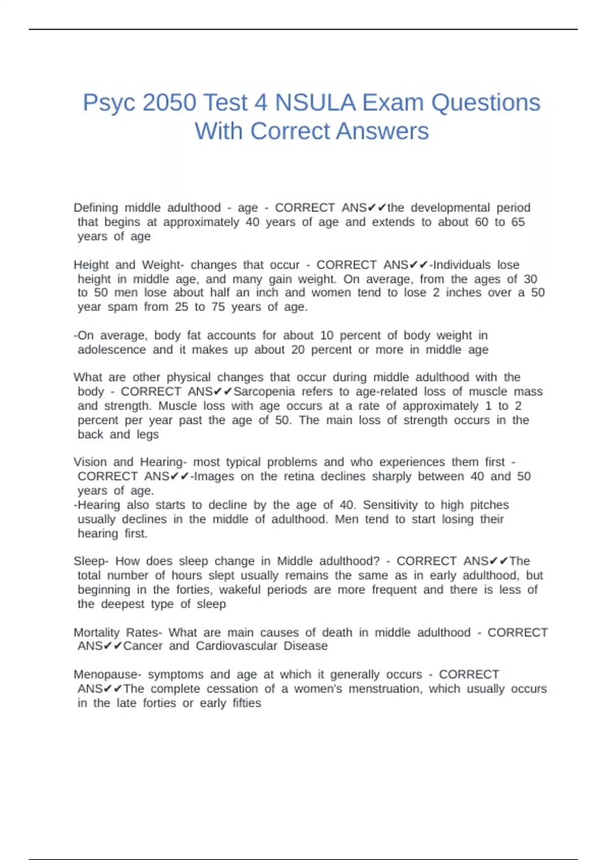 Sleep- cHow cdoes csleep cchange cin cMiddle cadulthood? c- cCORRECT cANS✔✔The