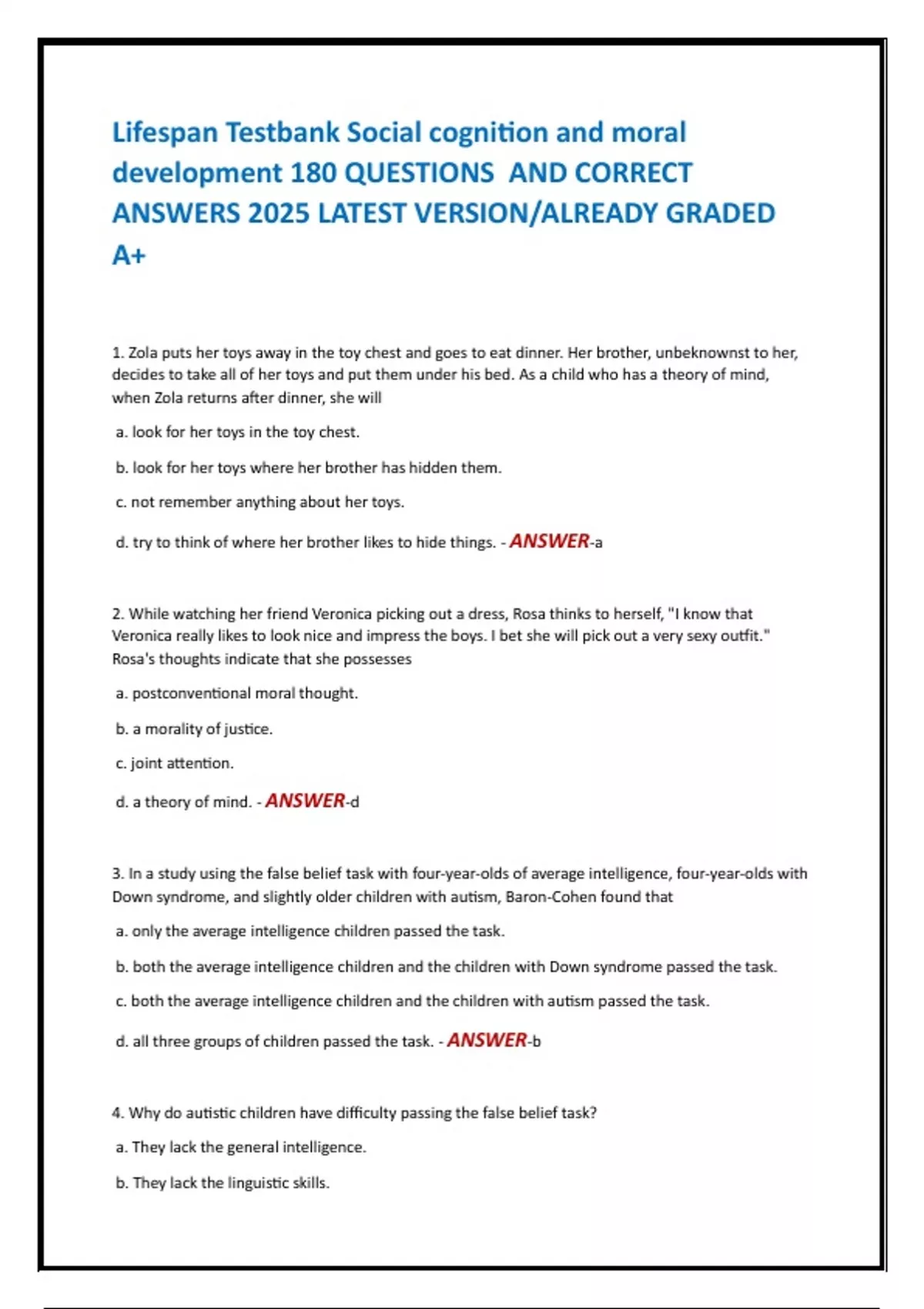 3. In a study using the false belief task with four-year-olds of average intelligence, four-year-olds with