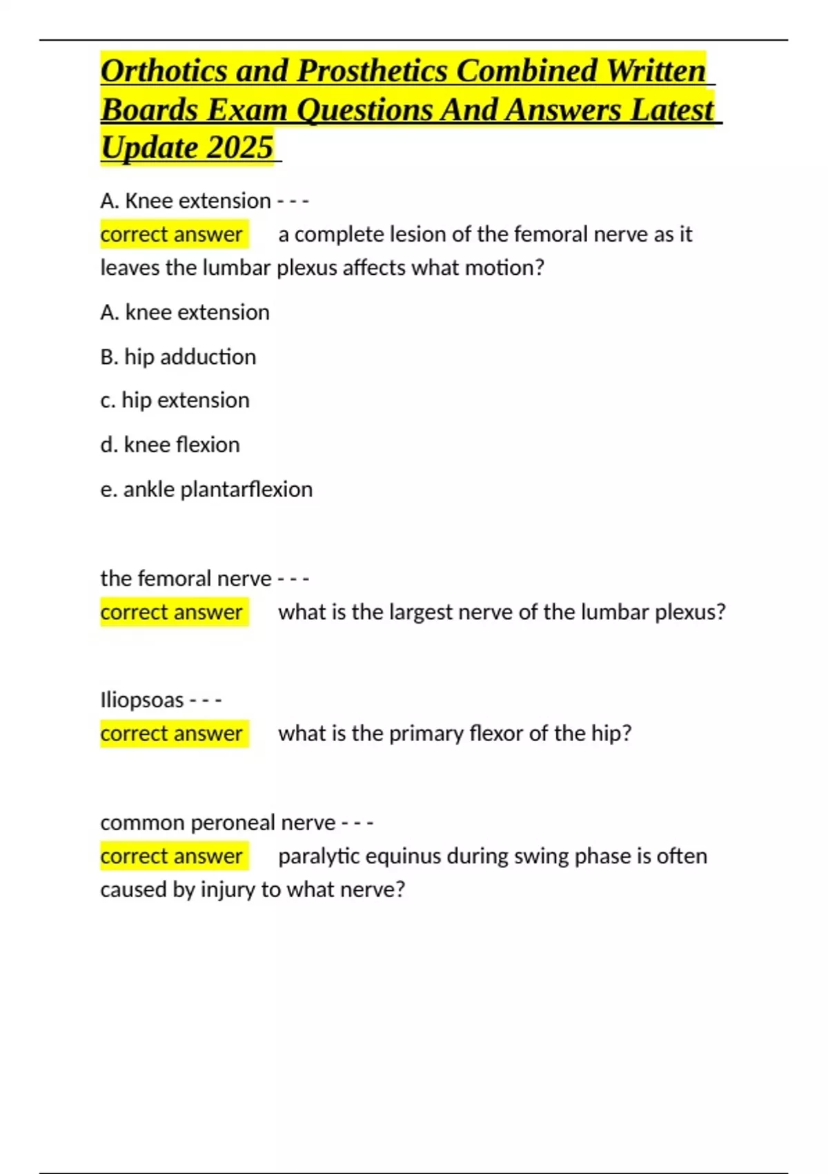 Orthotics and Prosthetics Combined Written Boards Exam Questions And Answers Latest Update 2025.docx