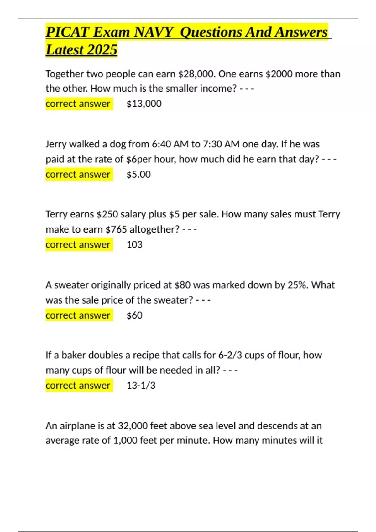 PICAT Exam NAVY Questions And Answers