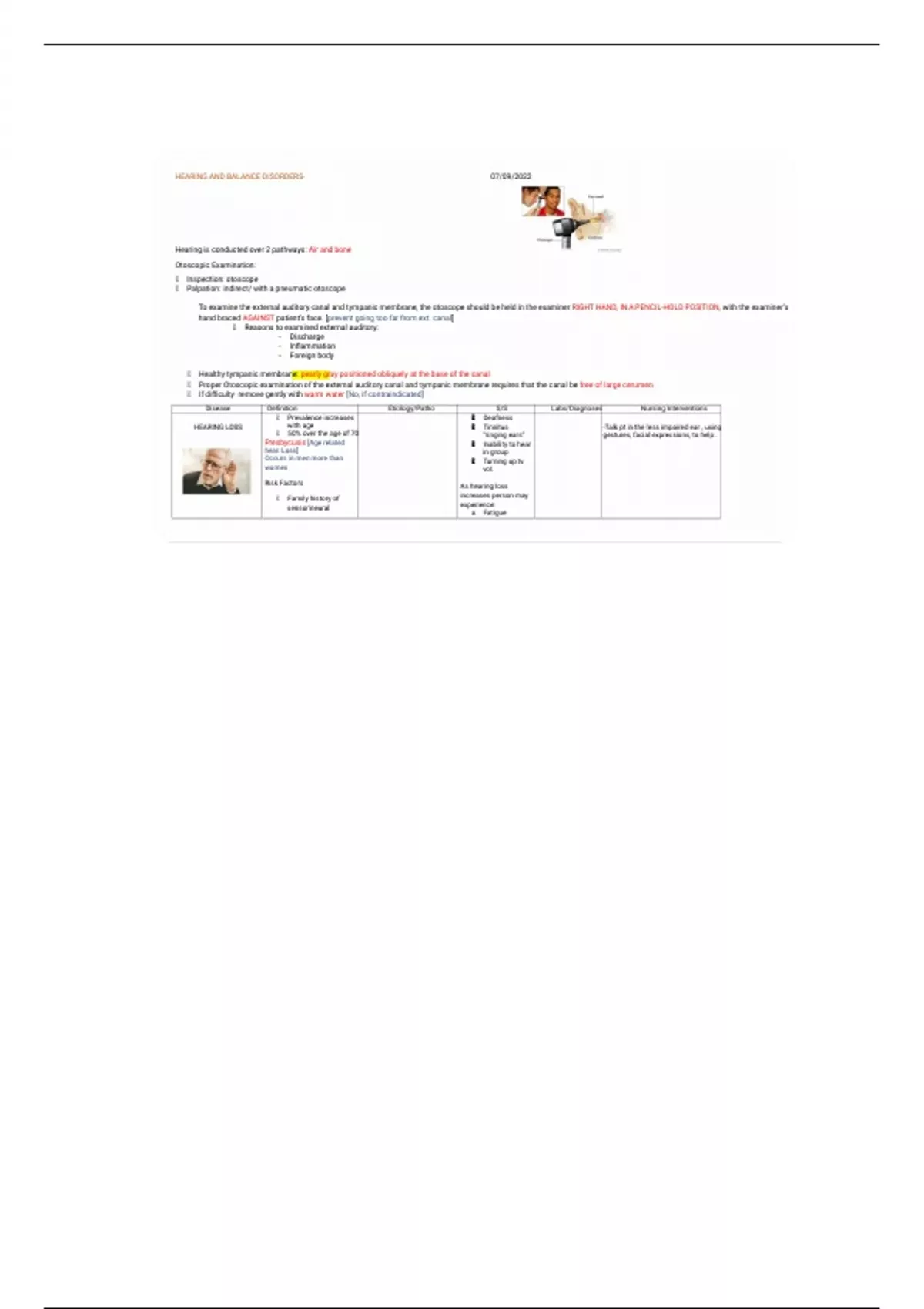 HEARING AND BALANCE DISORDERS- 07/09/2022
