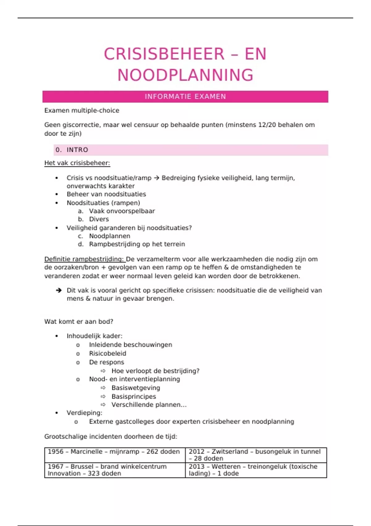 Samenvatting - Crisisbeheer en noodplanning