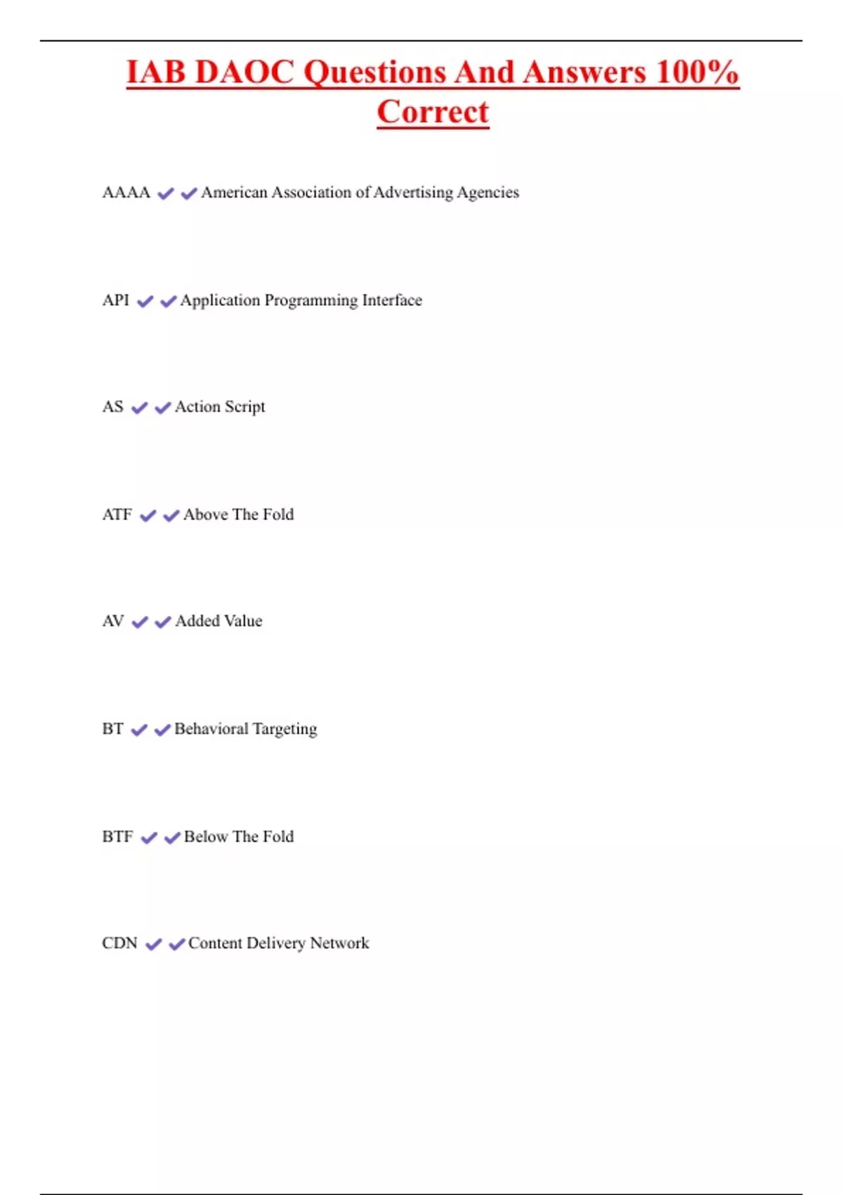 , IAB DAOC Questions And Answers 100%