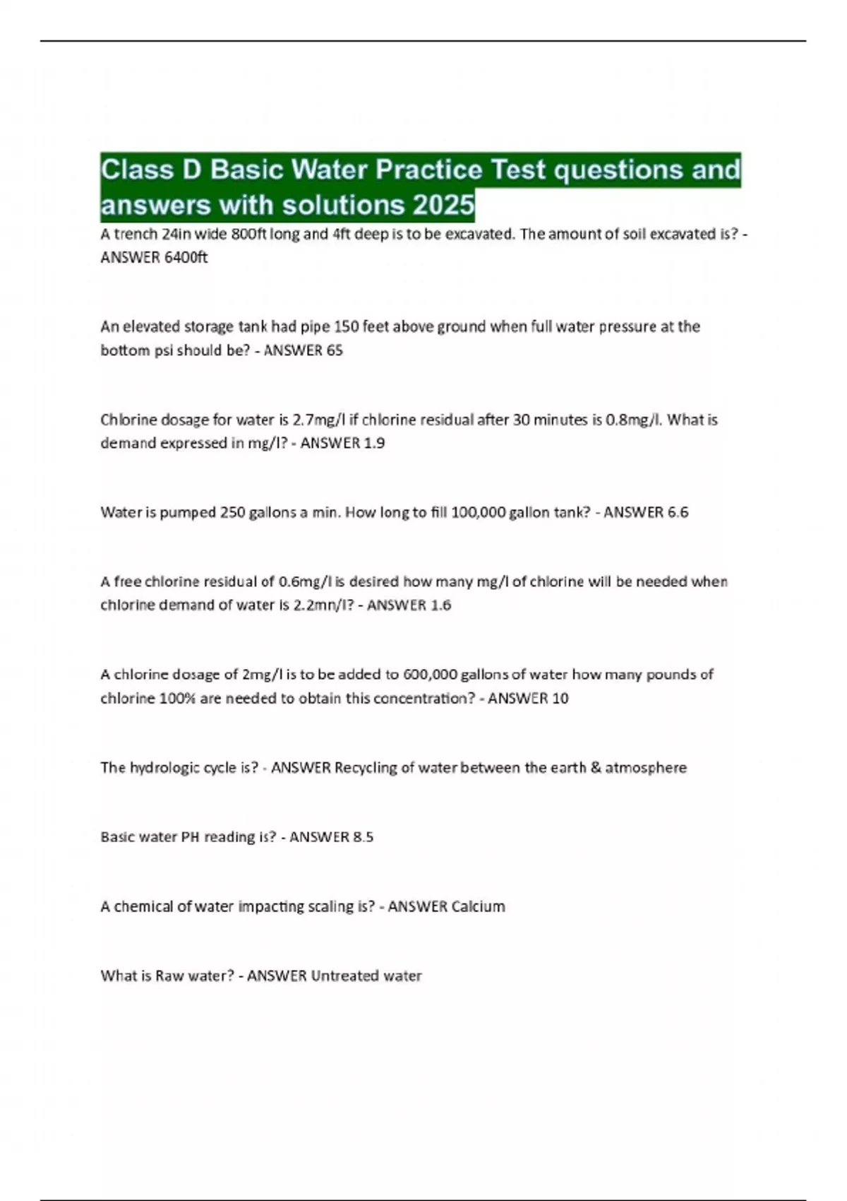 Class D Basic Water Practice Test questions and answers with solutions 2025
